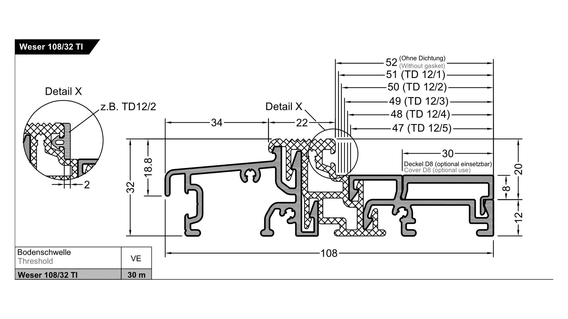 Balkonový práh Weser 108/32-TI EV1 GUTMANN
