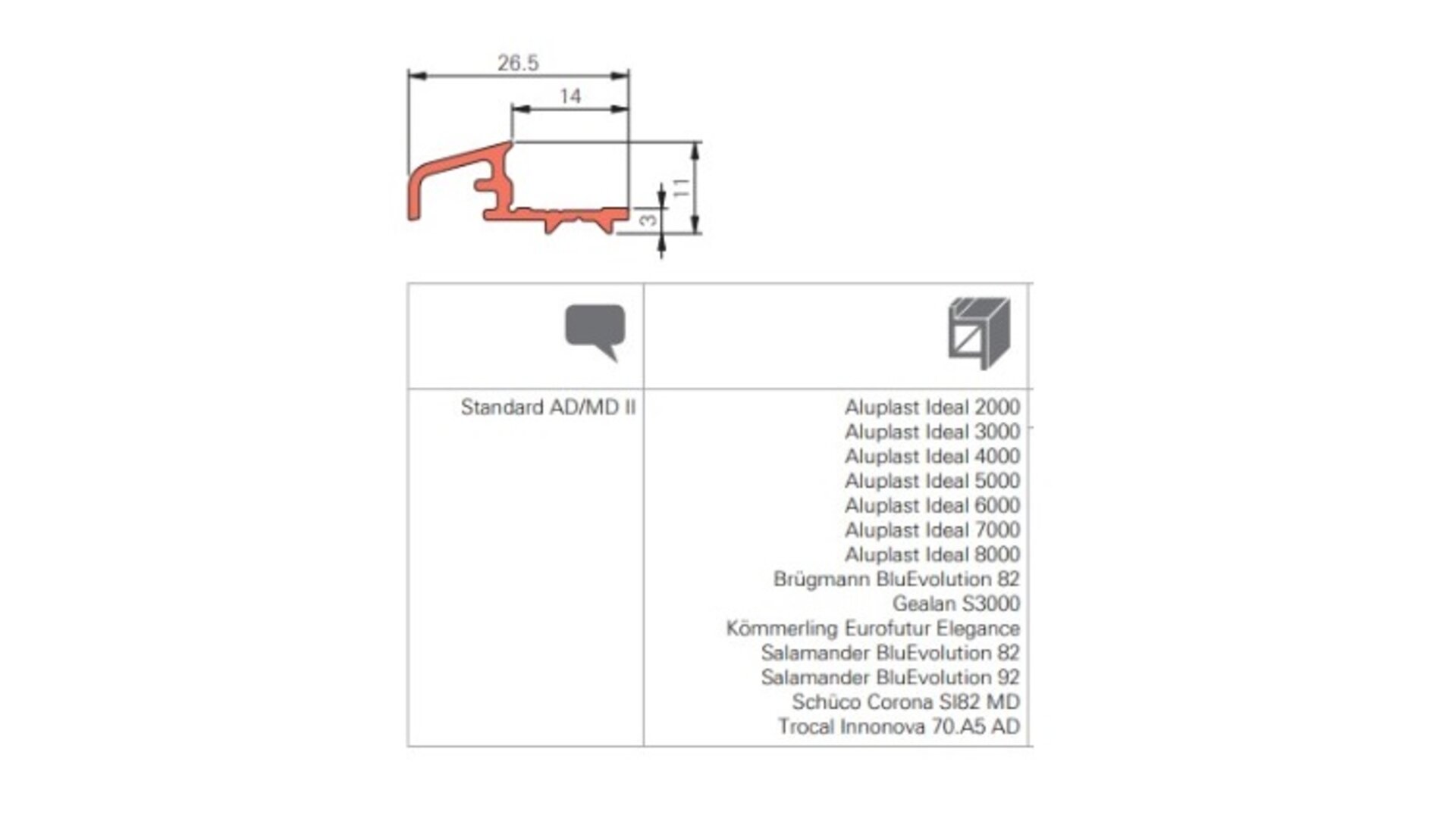 vhodné pro PVC profily: Aluplast Ideal, Brügmann BluEvolution, Gealan, Kömmerling Eurofutur, Salamander BluEvolution, Schüco Corona, Trocal Innonova a další