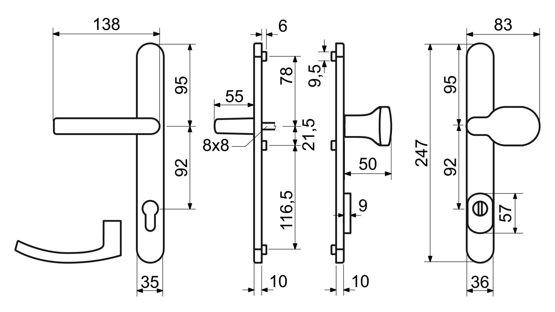 Nerezové dveřní kování pro profilové dveře BASIC