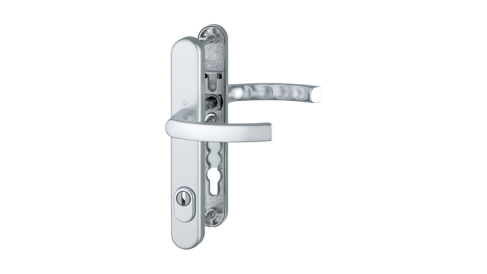Kování s úzkým štítkem Liege 36, klika-klika s překrytím, 8/92 mm 67-72, stříbrná HOPPE
