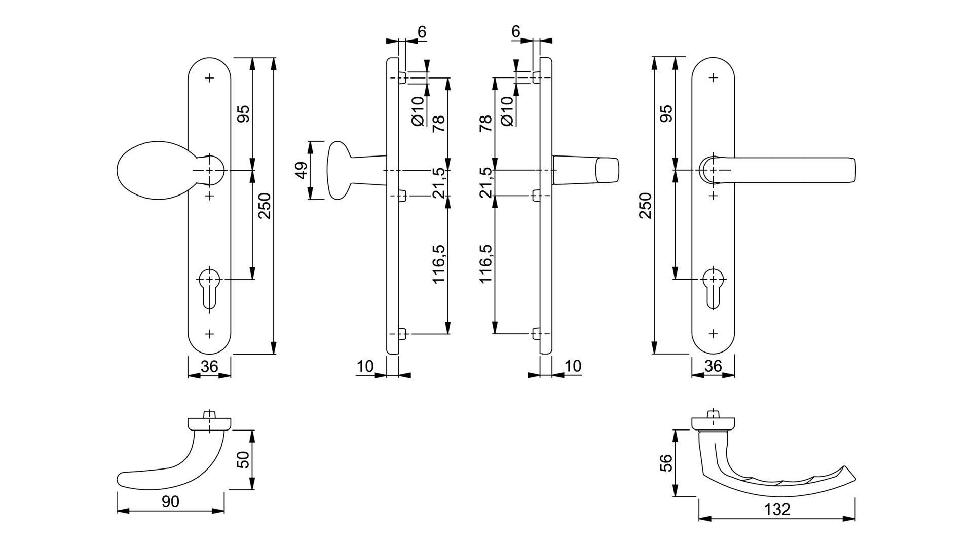Dveřní kování pro profilové dveře Hoppe LIEGE