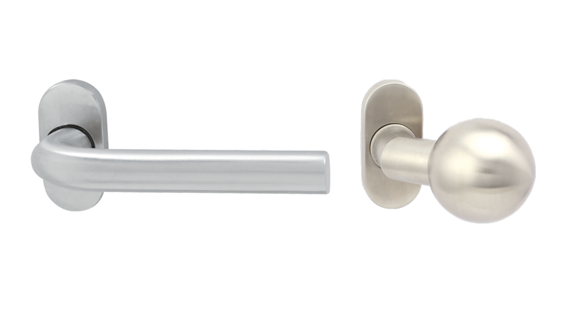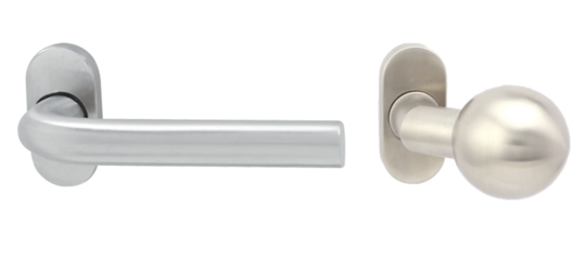 Objektová koule+klika 8511/8502 na oválných rozetách, vč. PZ rozet, s vratným perem, nerez, 8mm
