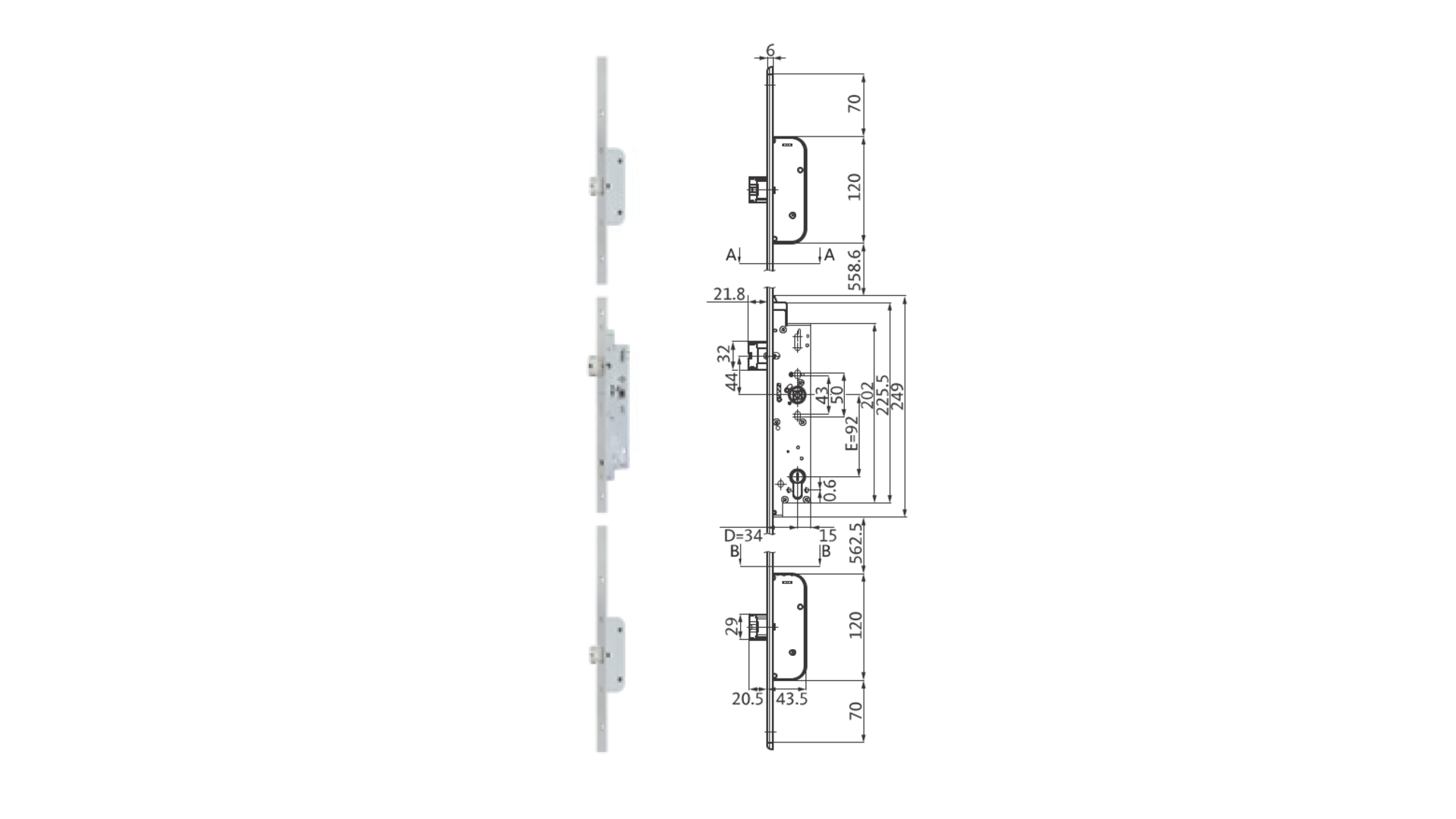 Panikový zámek Secury 1910 fce B klika-klika 4v1, DM45/92/24x3/9/890/1750 L/P BKS 6-B1910-02-L-8