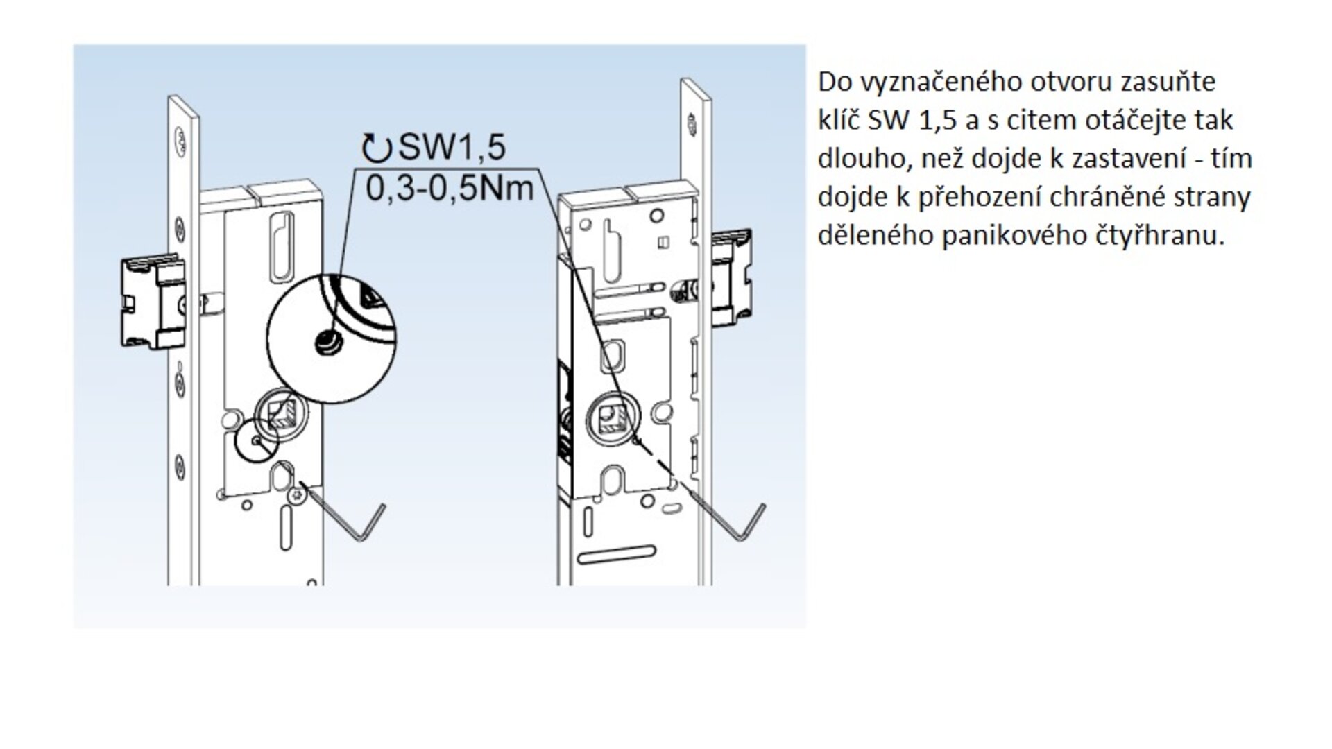 Panikový zámek s funkcí B (tzv. přepínací - lze nastavit režimy den/noc - trvale z venku otevřeno/trvale z venku zavřeno)