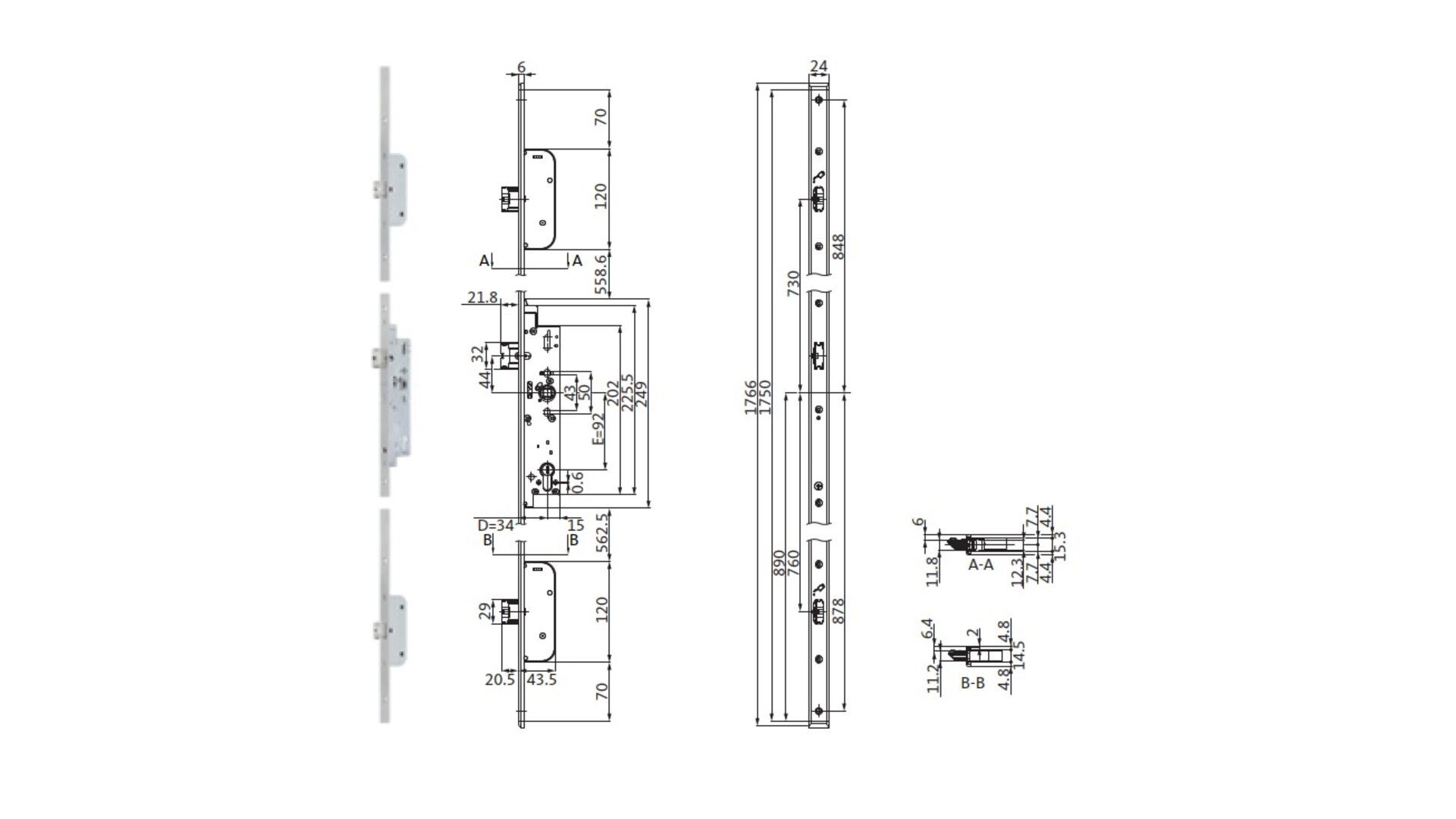Panikový zámek Secury 1917 fce E klika-koule 4v1 (dvoukřídlo), DM35/92/U24x6/9/890/1750 L/P BKS 6-B1917-01-L-8