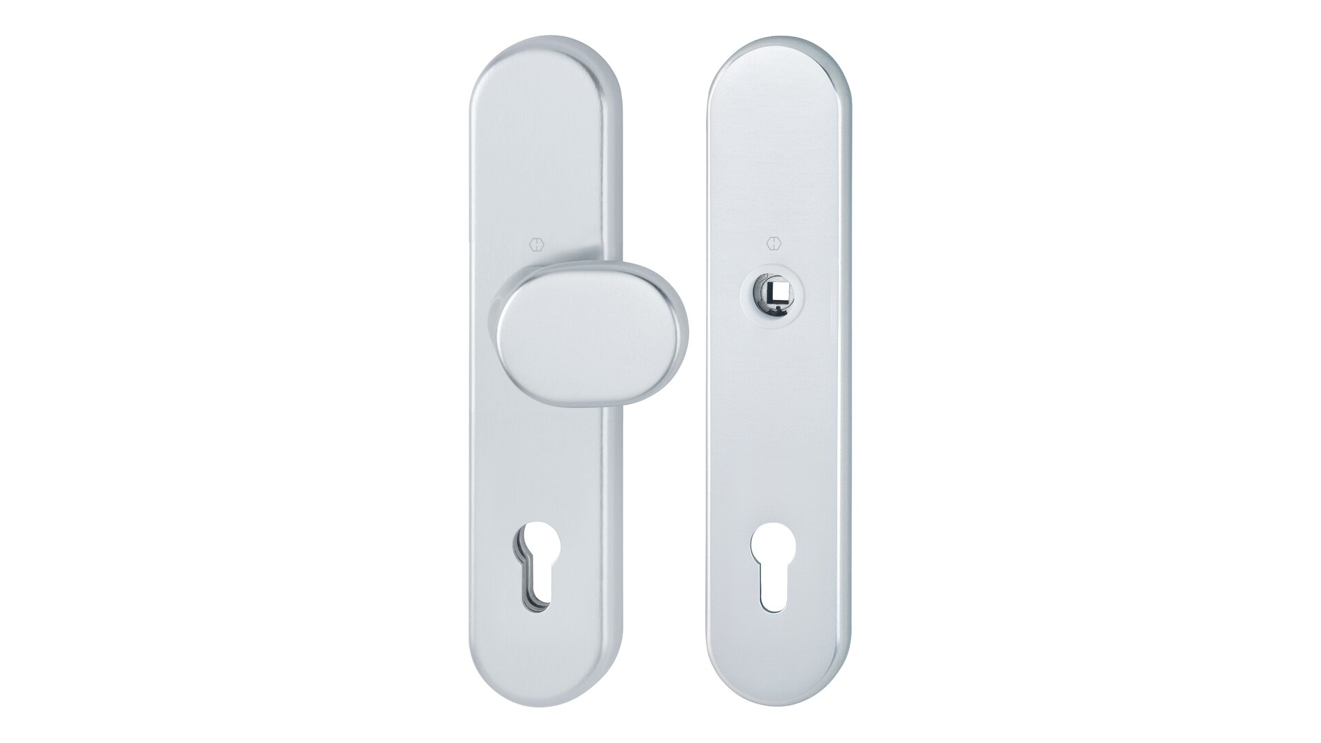 Pár oválného štítku s koulí 86G/3331/3310 (pro klika/koule), 8/92mm SK3/SST/vratné pero, 67-77mm, F1 stříbrná HOPPE