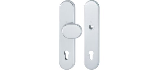 Pár oválného štítku s koulí 86G/3331/3310 (pro klika/koule), 8/92mm SK3/SST/vratné pero, 67-77mm, F1 stříbrná