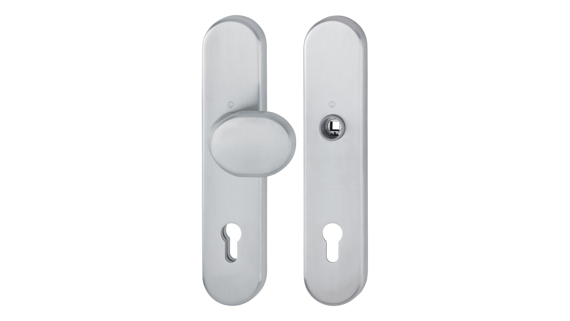 Pár oválného štítku s koulí E86G/3331/3310 (pro klika/koule), 8/92mm SK3/SST/vratné pero, 67-77mm, F69 nerez HOPPE