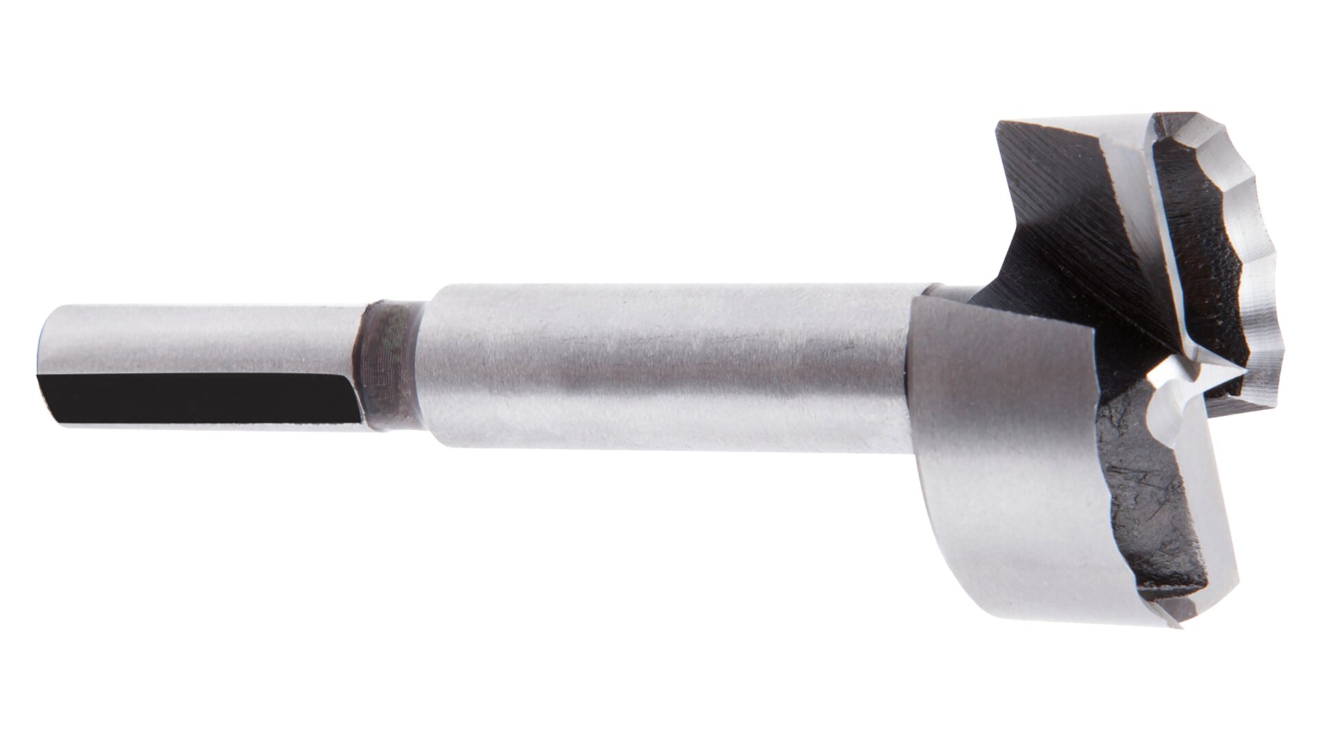 Obvodový břit s patentovaným vroubkovaným ostřím, 2 břity a hřídel se 3 povrchy, v prvotřídní kvalitě. Použití: Pro vrtání bez trhání, rozměrově přesné slepé otvory, pro vrtání na hraně a pro vrtání pod úhlem do měkkého a tvrdého dřeva.