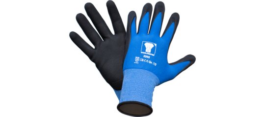 Povlak z mikronitrilové pěny na dlani a konečcích prstů montážních rukavic STAHLHÄRTER zajišťuje bezpečné uchopení při montáži a optimální úchop při uchopování.