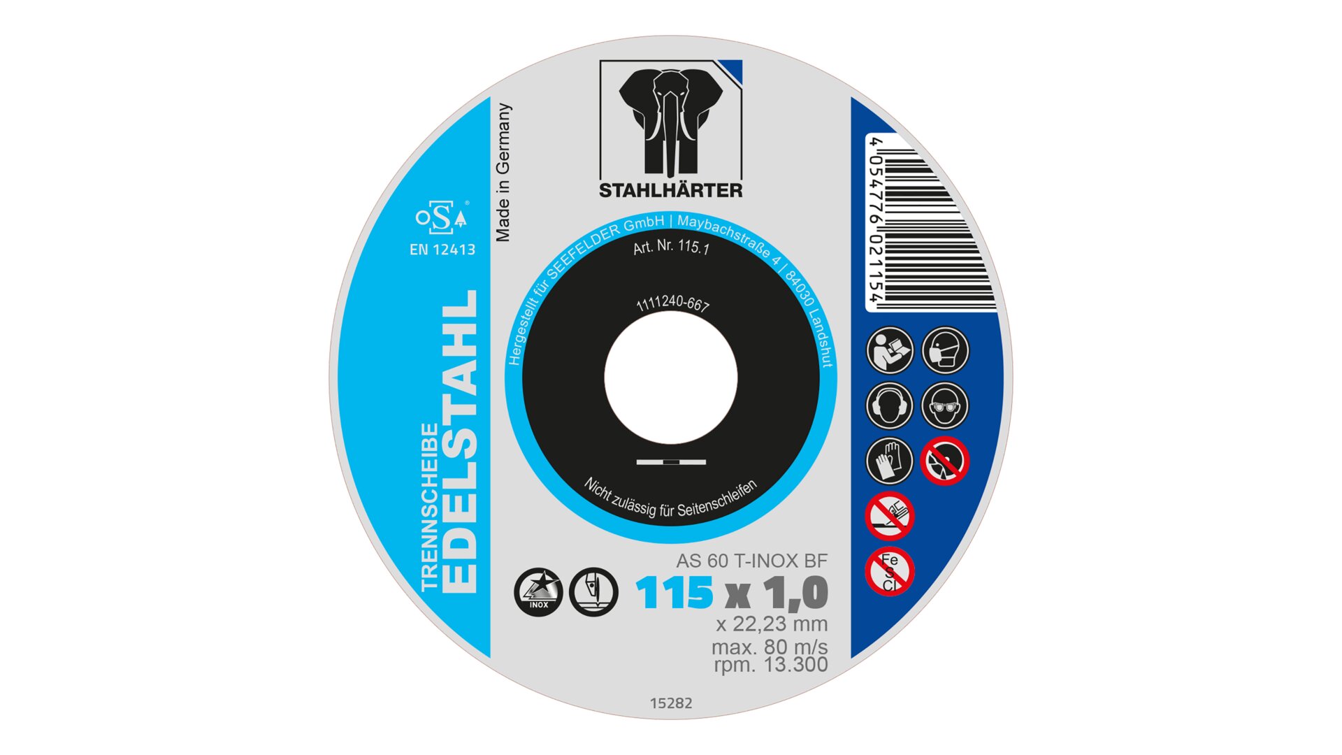 STAHLHÄRTER Řezný kotouč na nerezovou ocel AS 60 T; prům.115 x 1,0 mm