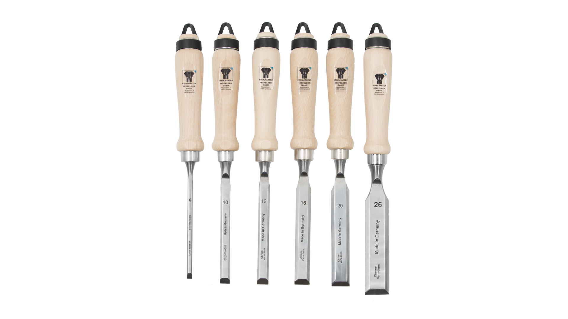 STAHLHÄRTER Sada dlát s rukojetí z bílého buku v dřevěném boxu; 6 ks 6-26 mm