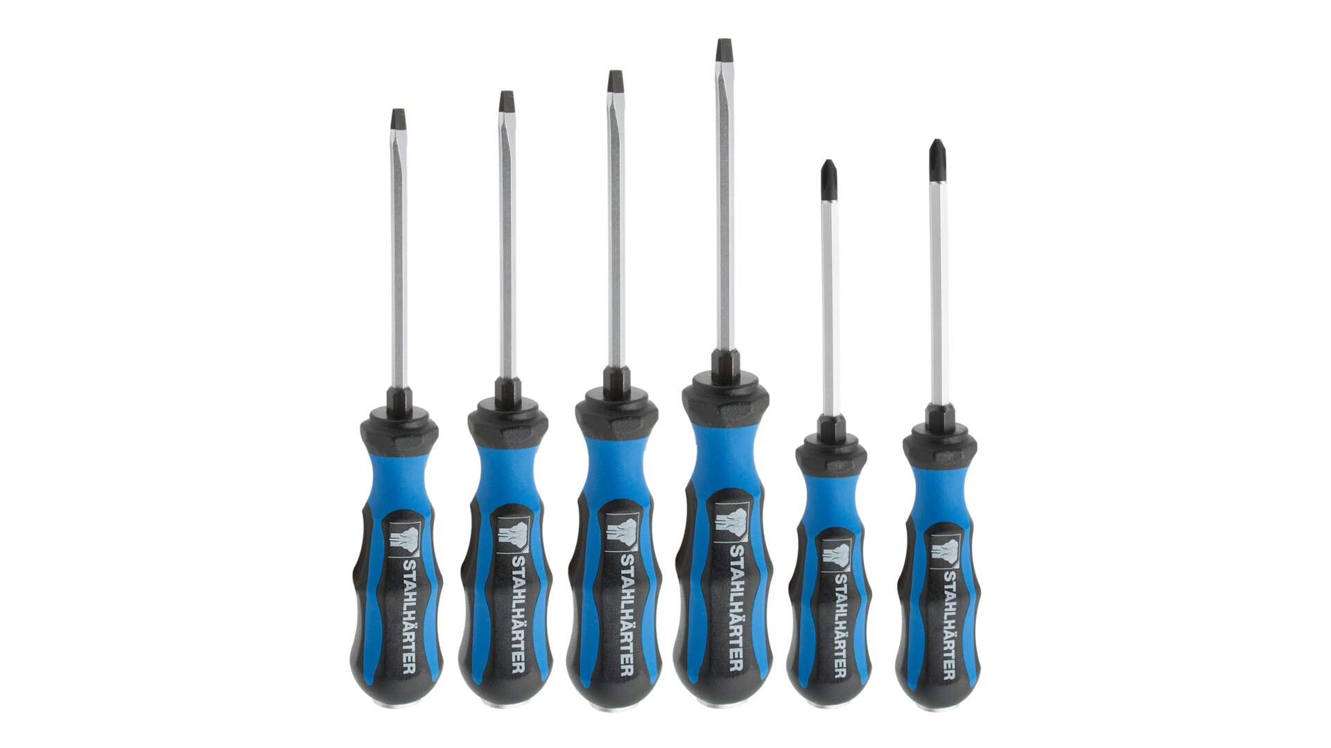 STAHLHÄRTER Sada plochých šroubováků; 6 ks; ploché (3,5/4,5/5,5/8) + PZ1/2