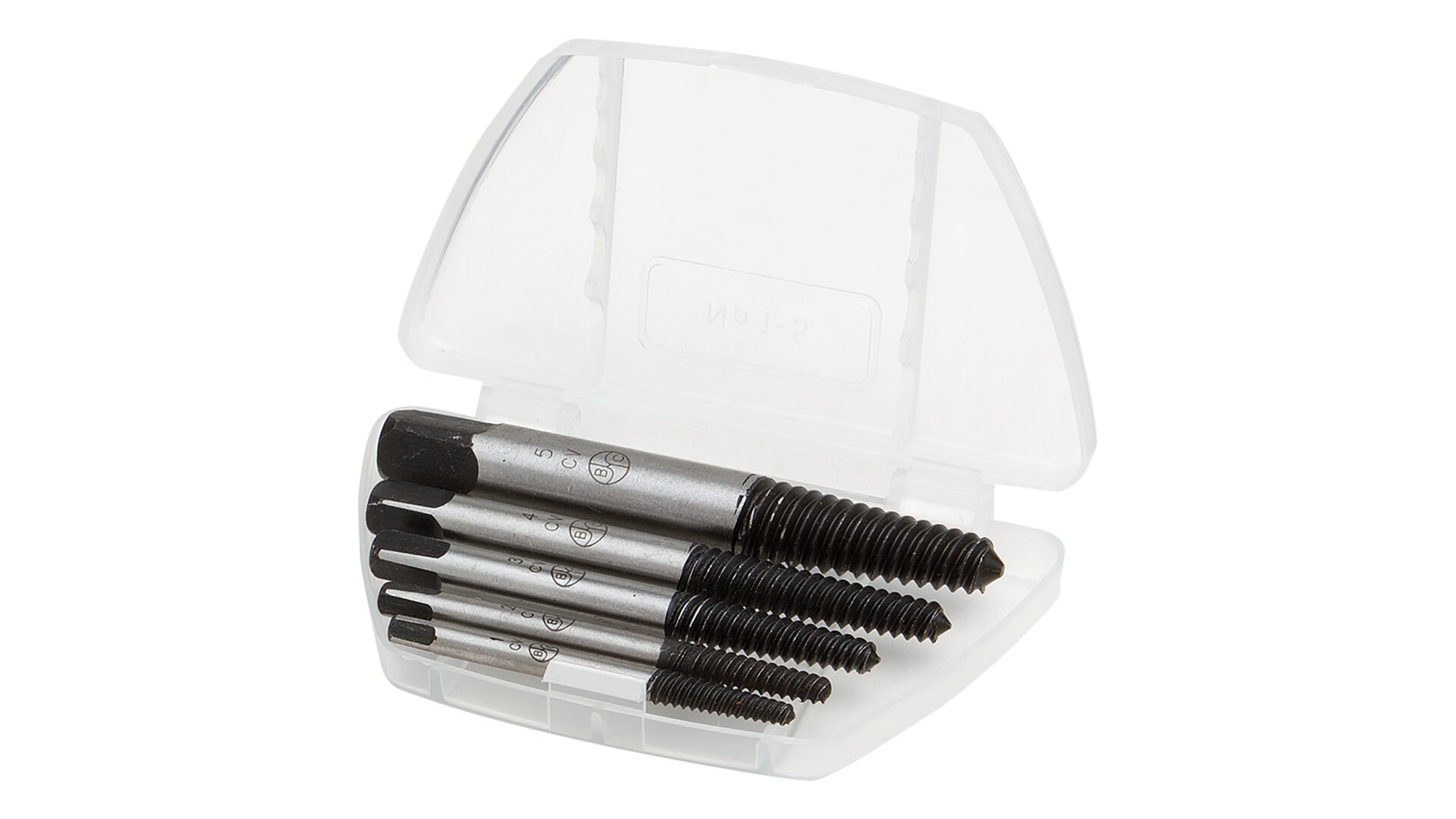 Pětidílná sada vytahovačů šroubů pomáhá vyšroubovat zlomené šrouby. Pokud se šroub ulomí v závitu, lze jej snadno vyjmout pomocí vytahovače šroubů, aniž by došlo k poškození závitu.