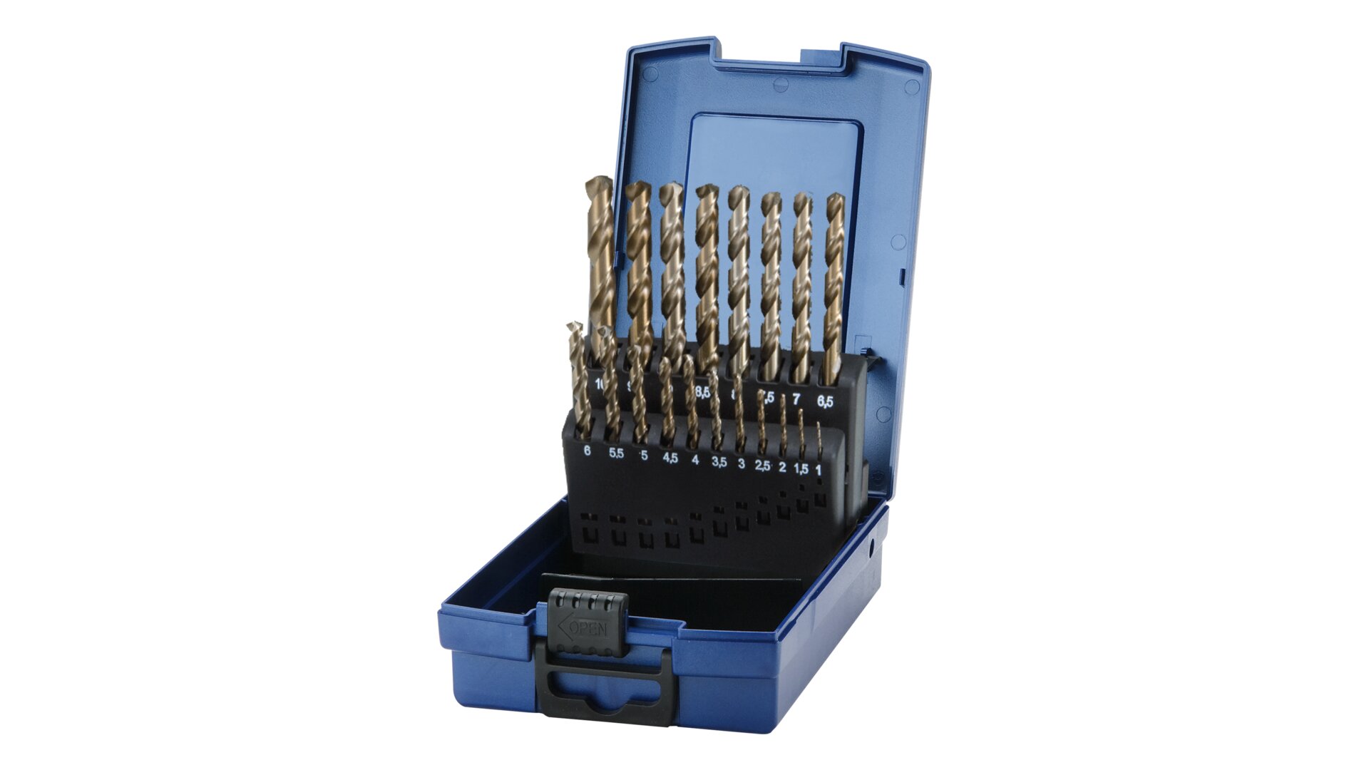 STAHLHÄRTER Sada spirálových vrtáků v kazetě DIN 338 HSS-E (Co-5) 1,0-10 mm; 19ks