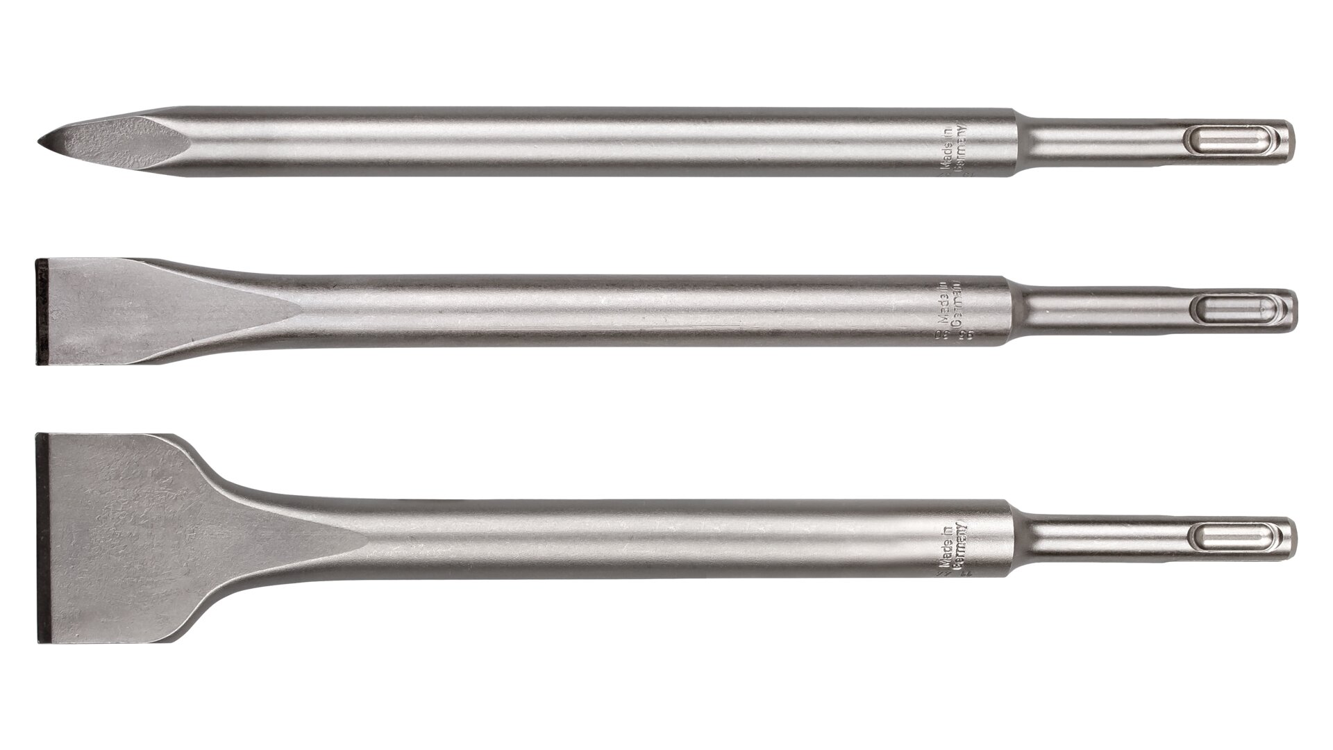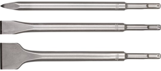 Třídílná sada sekáčů s držákem SDS-plus pro širokou škálu demoličních prací.