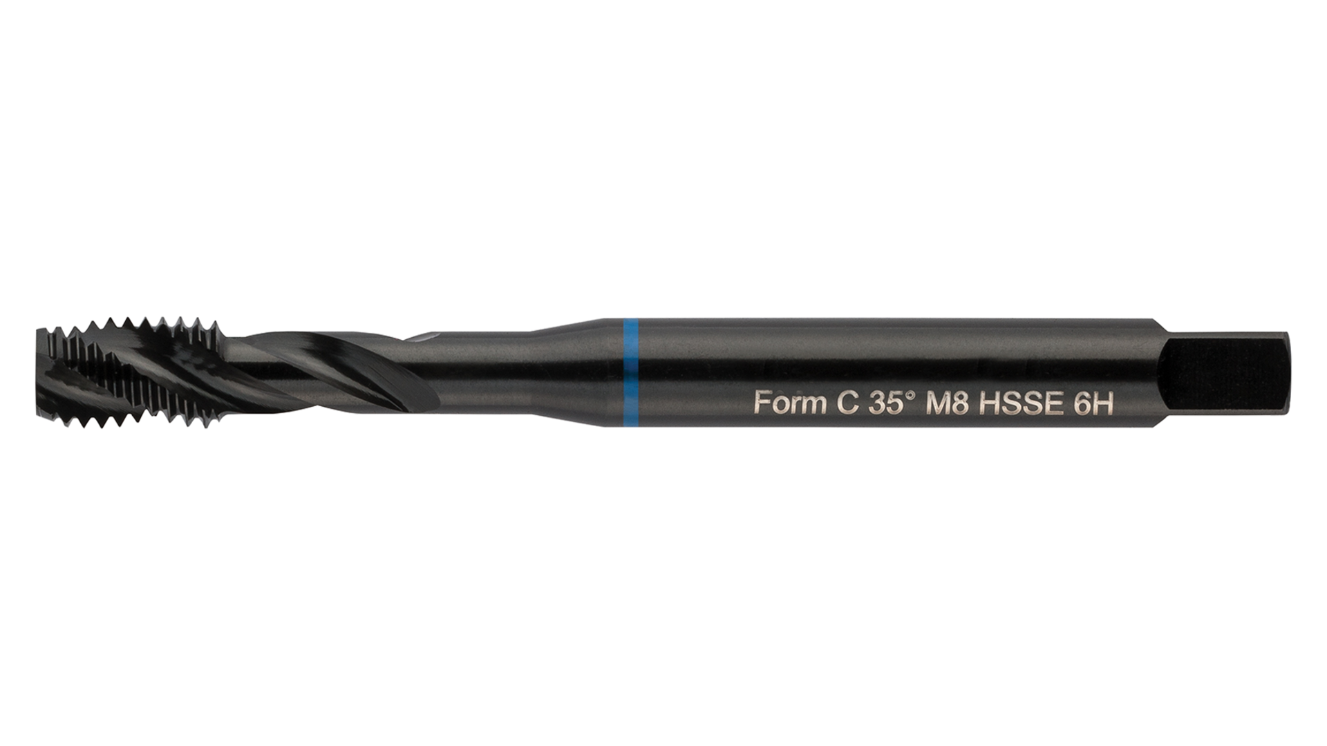 HSS s 5 % kobaltovou slitinou, broušený, lesklý povrch, pravotočivý řez. Metrický závit DIN ISO 13. Pro VA nerezovou a korozivzdornou ocel. Pro nelegované a nízkolegované oceli do pevnosti 1000 N/mm2 - RSP 35° = 2-3 drážkové vedení s pravotočivou šroubovicí 35°.