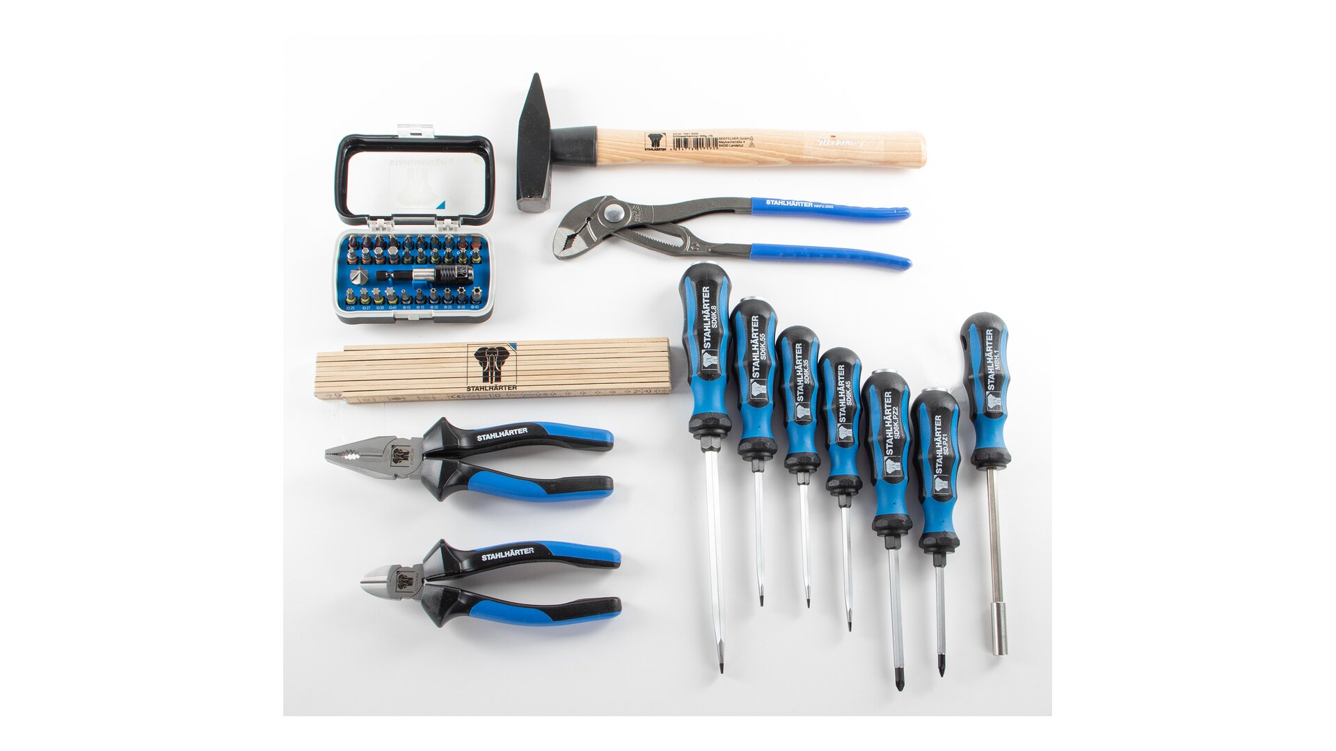 Šroubováky, kladiva, metr, různé kleště a další nářadí jsou ideálním základem pro úspěšný začátek řemeslné kariéry. Nářadí STAHLHÄRTER přesvědčí svou robustní a spolehlivou kvalitou a mimořádným výkonem.
