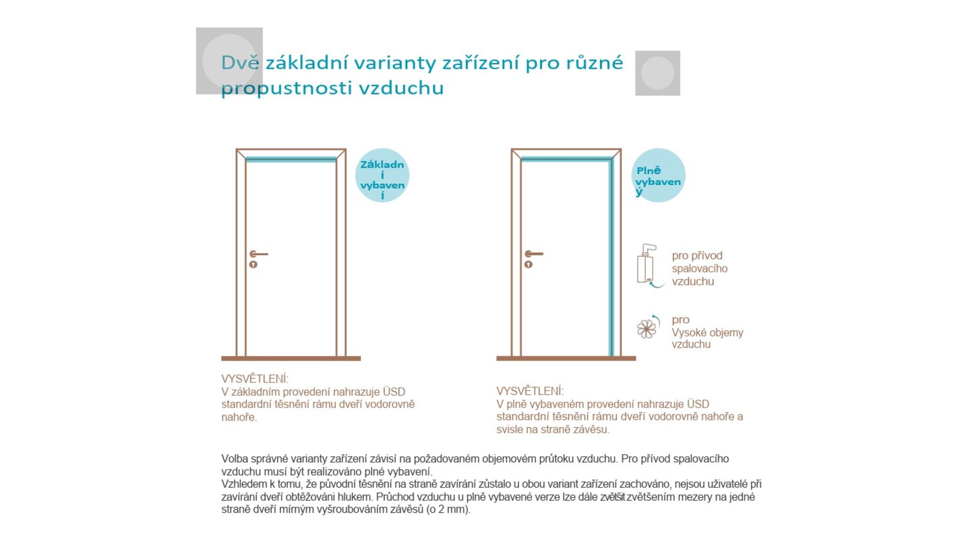 Funkční cirkulace vzduchu je základem účinného větrání. Čerstvý vzduch se obvykle přivádí okenními větracími prvky a vlhký vzduch se odvádí ven. Přivětrávací těsnění zajišťuje průchod vzduchu mezi místnostmi.