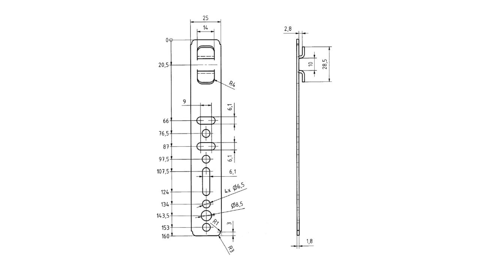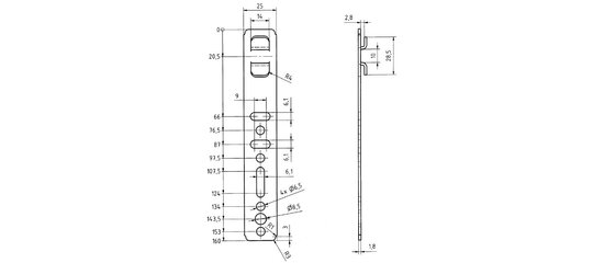 ANKERPLATTE gerade; Salamanderprofil (Teilung 28,5/1,8mm) KOVOPLAST