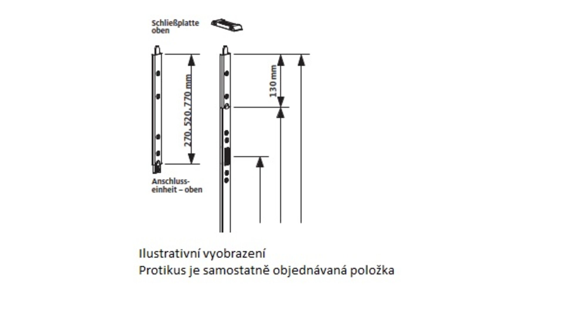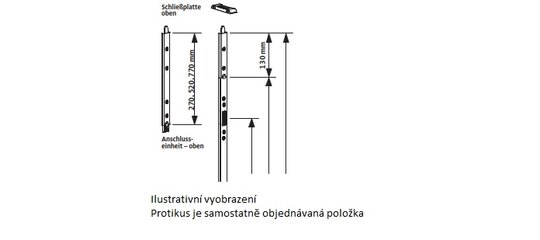 Horní/spodní zástrč dveřní štulpové lišty U30x10, 270mm, levá GU 6-35765-62-L-1
