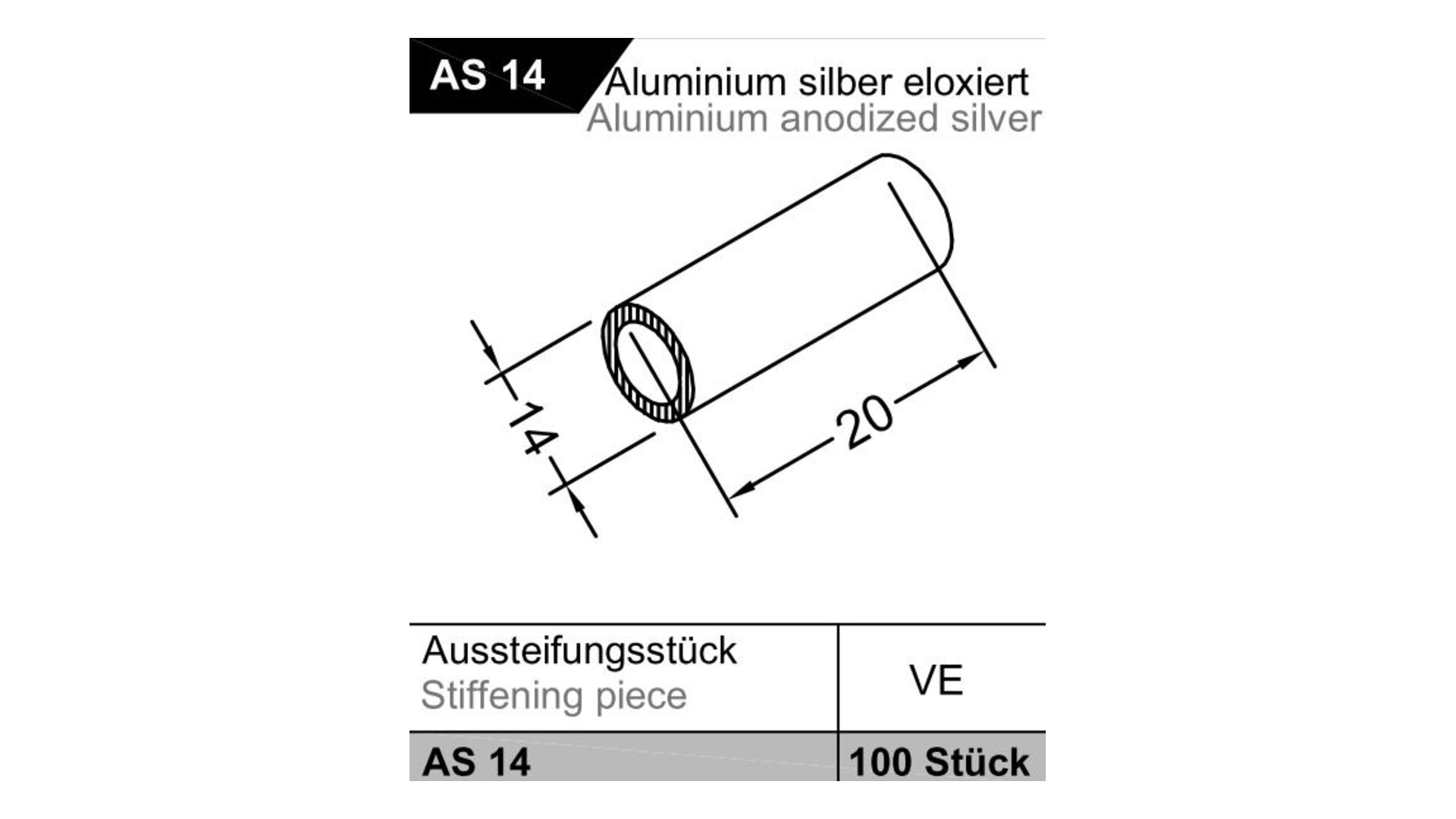 Aussteifungsstück AS 14 Aluminium silber eloxiert GUTMANN