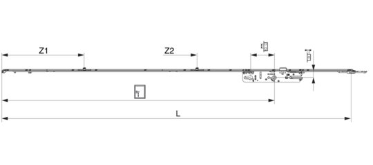 B-TV Balkontürverschluss mit Falle mit 2 i.S. E92 PZ DM45 GM1.050 L=1.347 silber fix MACO