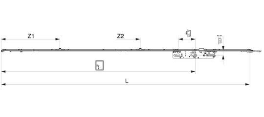 B-TV Balkontürverschluss mit Falle mit 2 i.S. E92 PZ DM50 GM1.050 L=1.347 silber fix MACO