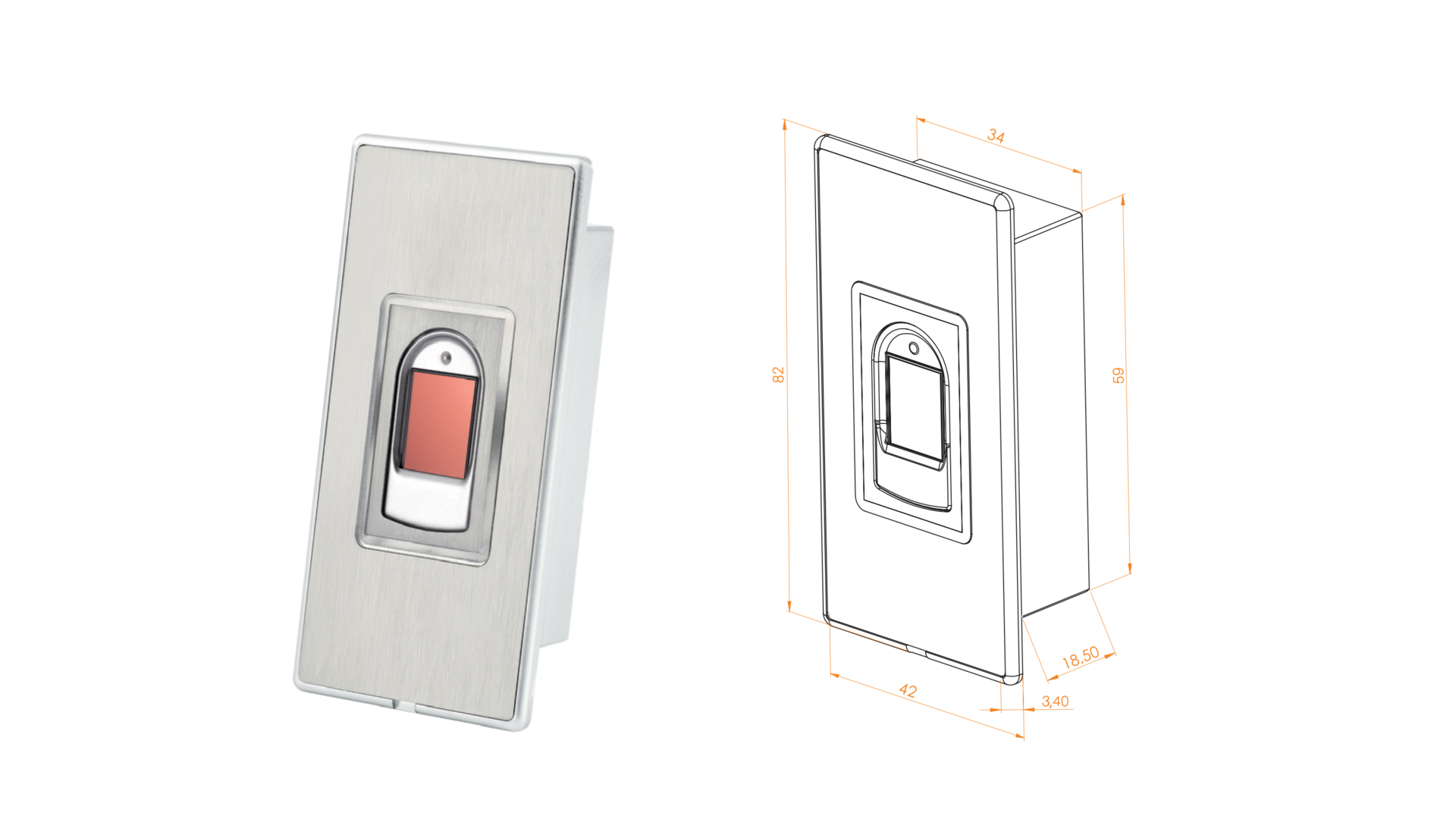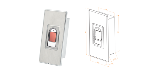 Bioreader fingerprint reader - built-in, STAINLESS STEEL, front dim 42x82mm, installation dim 34,2x59x18mm NAVKOM
