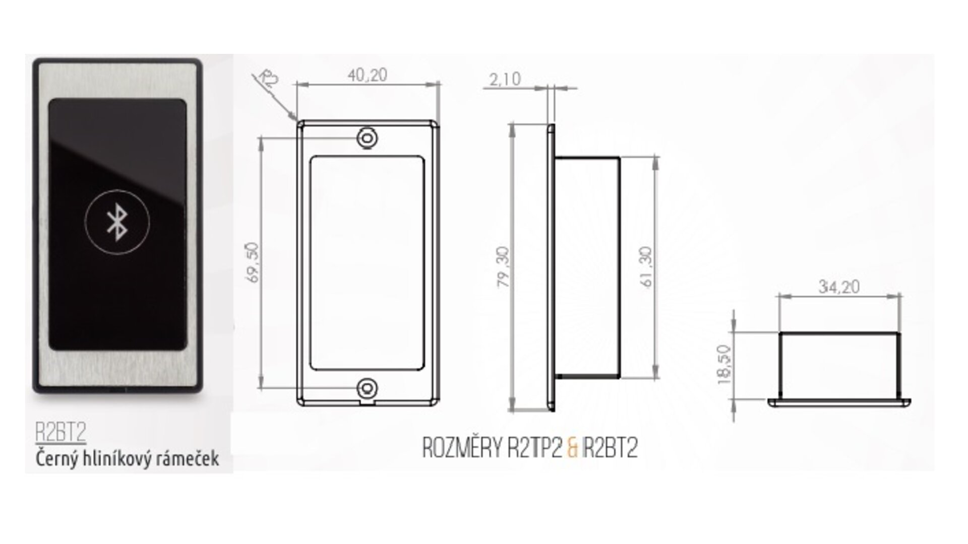 Technické parametry R2BT2 pro zapuštěnou montáž: