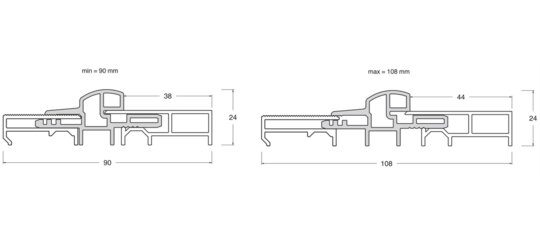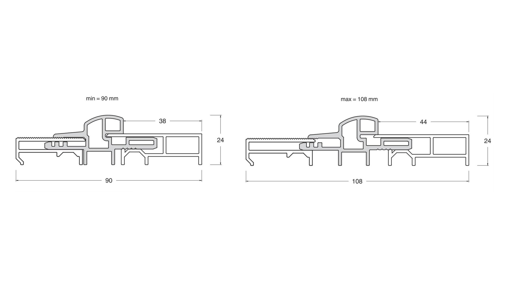 BODENTÜRSCHWELLE TRANSIT AUSZIEHBAR MIT THERMISCHER TRENNUNG F1 S=90-108MM L=5.000MM H=24 MACO