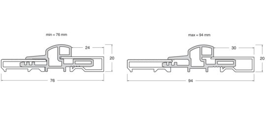 BODENTÜRSCHWELLE TRANSIT AUSZIEHBAR MIT THERMISCHER TRENNUNG S76-94 F1 L=5000mm H=20 MACO