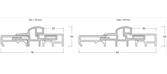 BODENTÜRSCHWELLE TRANSIT AUSZIEHBAR M.THERM.TRENNUNG F1 S=76-94MM L=5.000MM H=24 MACO