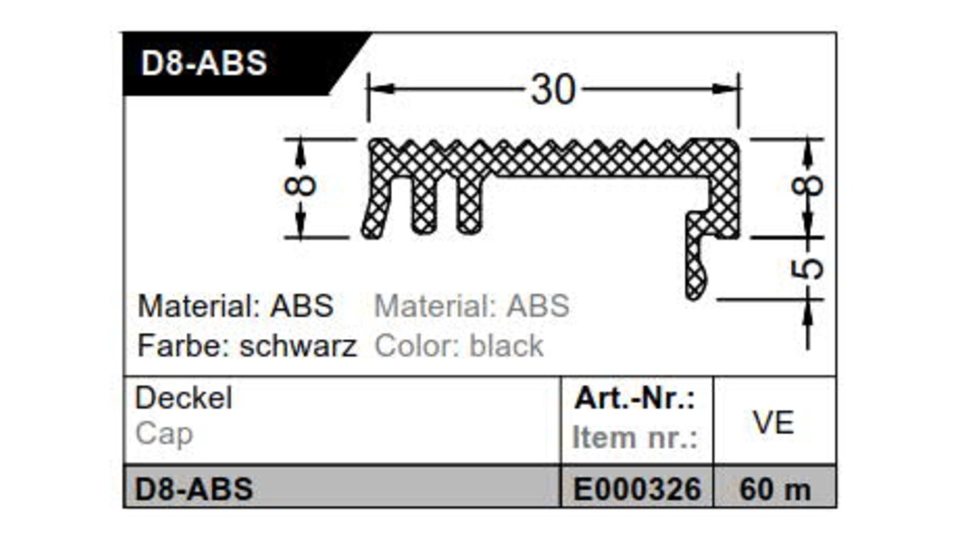 Deckel D 8-ABS schwarz - 60 bm (20x3bm) GUTMANN