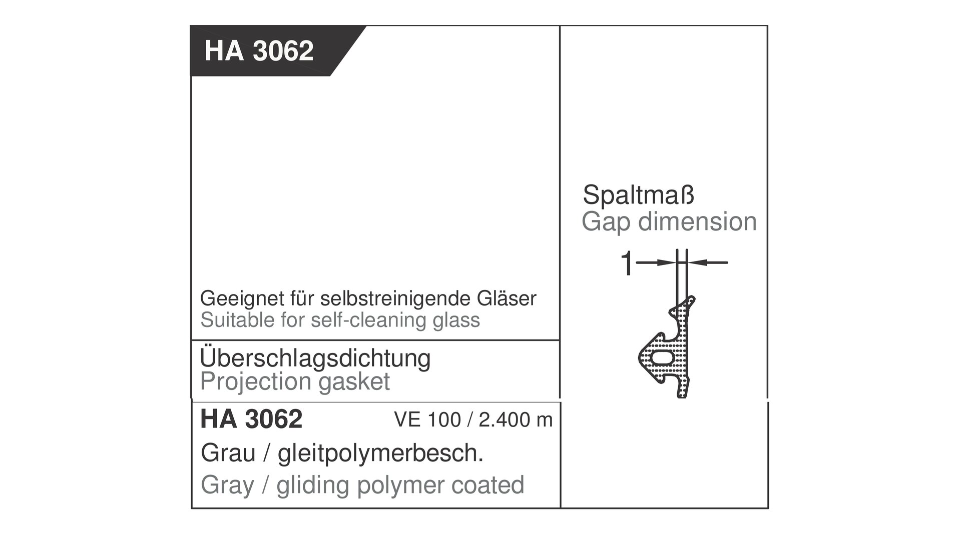 Dichtung für Überschlag HA 3062 G grau, 1mm GUTMANN