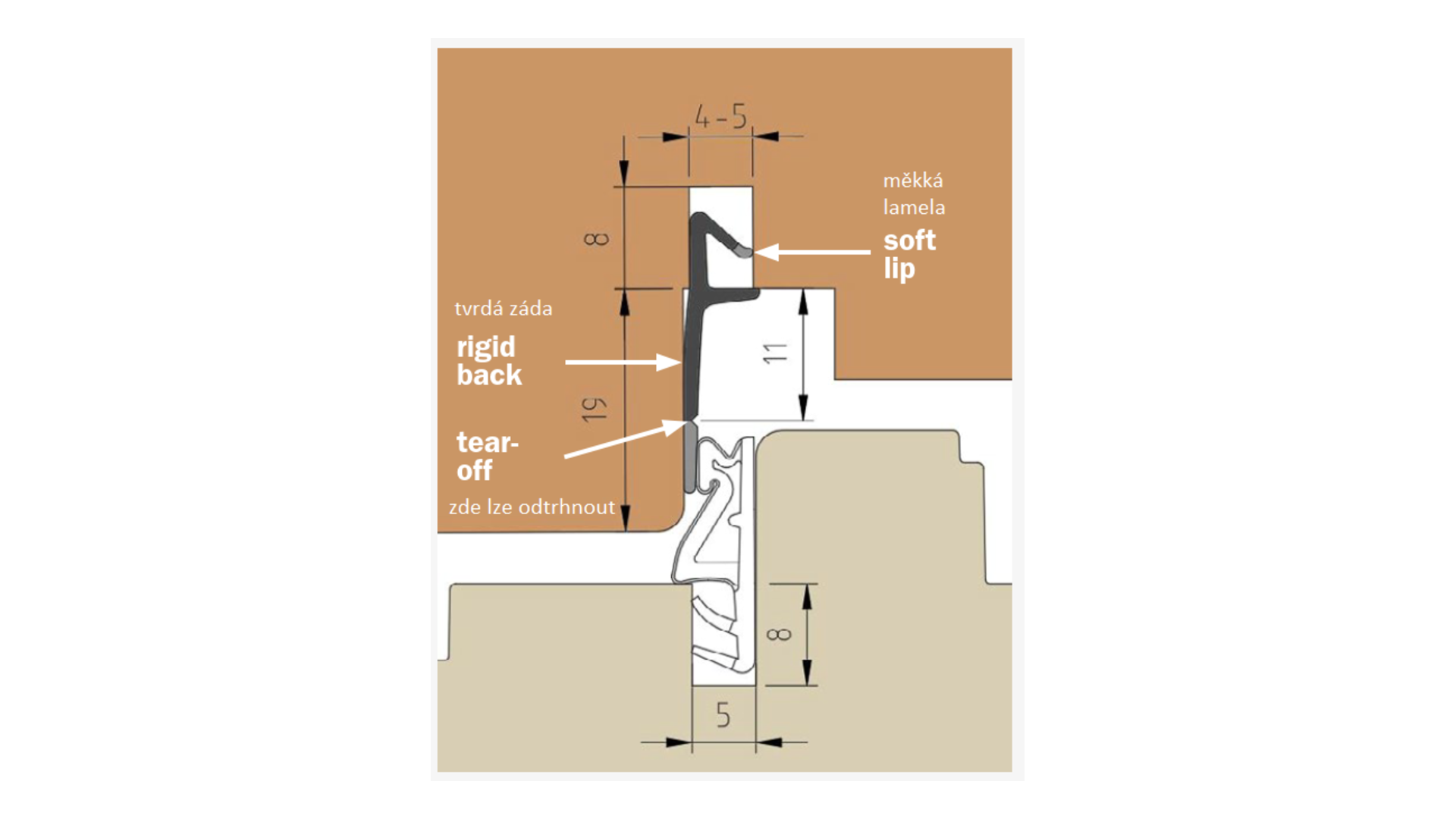 Falc: 12/19 mm, drážka: 4-5 mm, mezera: 5 mm