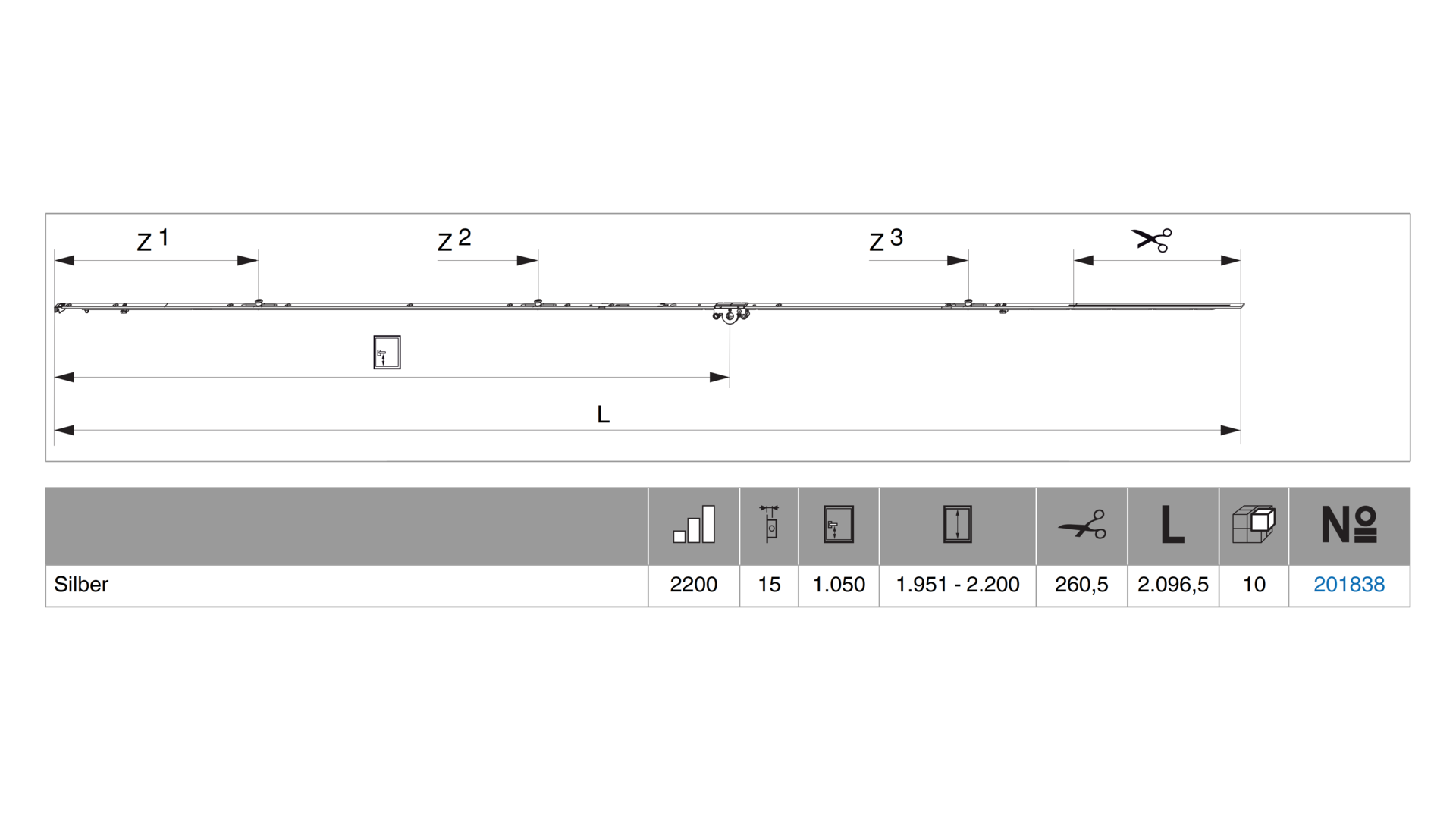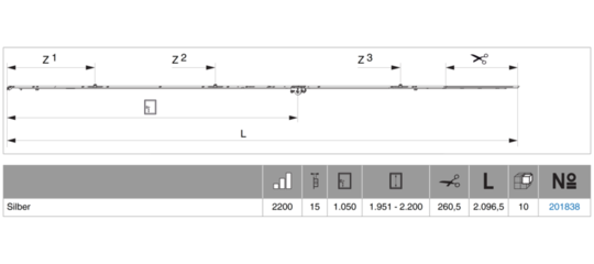 DREH-GETRIEBE MM 2200 DM15 FIX MIT 3 I.S. FFH 1.951-2.200 GM1.050 SILBER MACO