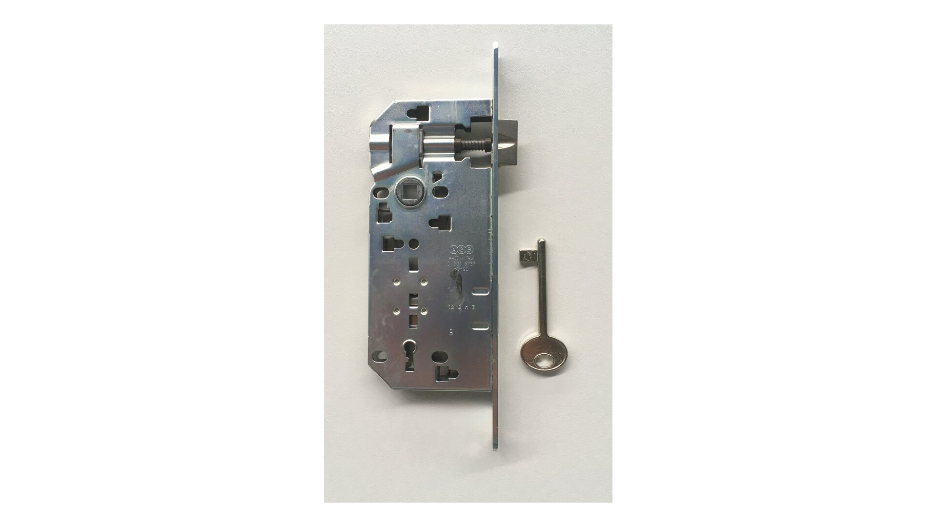 Dveřní zámek AGB 590 - 90/50/18/8 BB, zinek bílý, klíč č.7 AGB