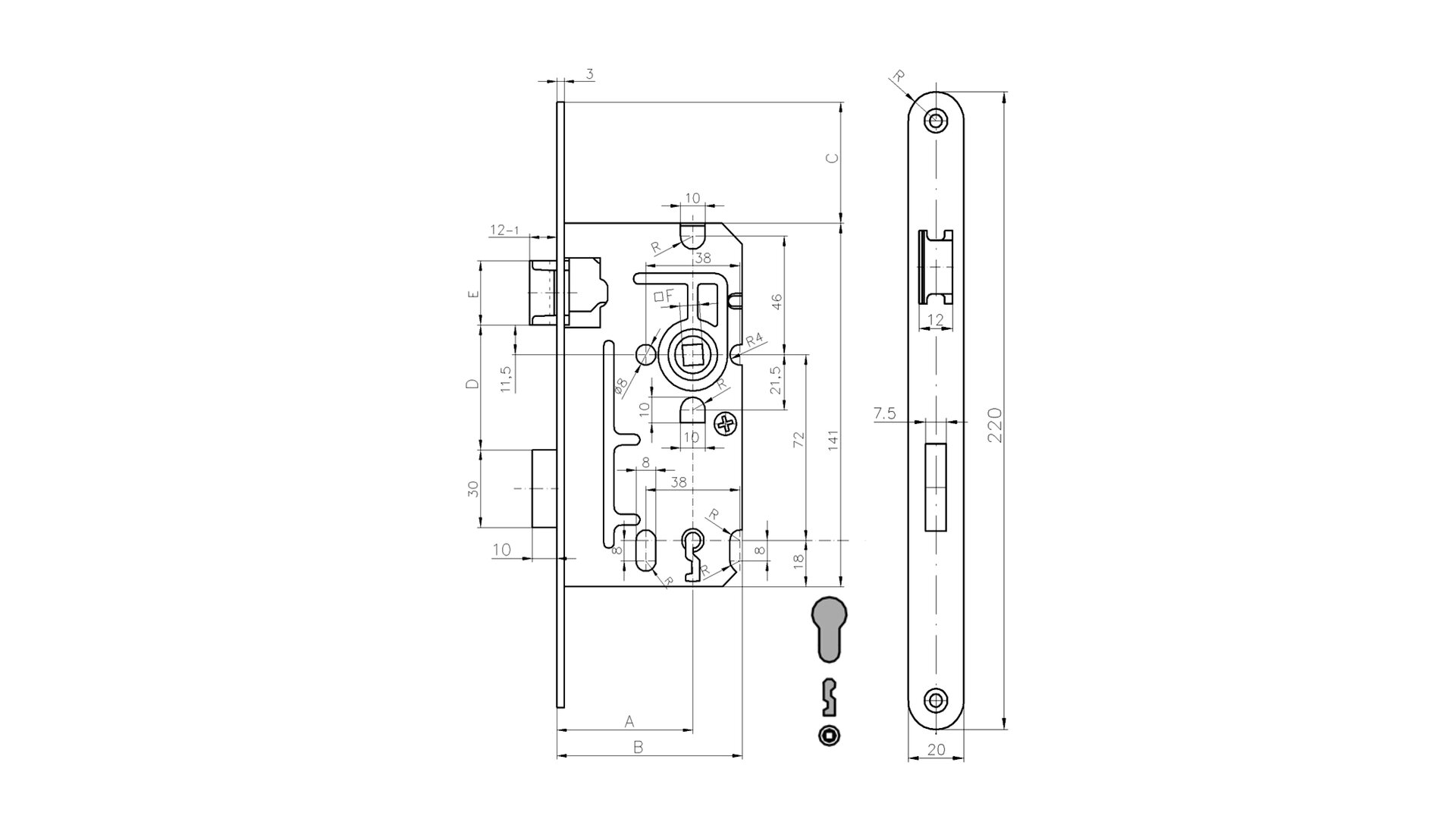 DVEŘNÍ ZÁMEK symetrický - 72/50/20 PZ DOM