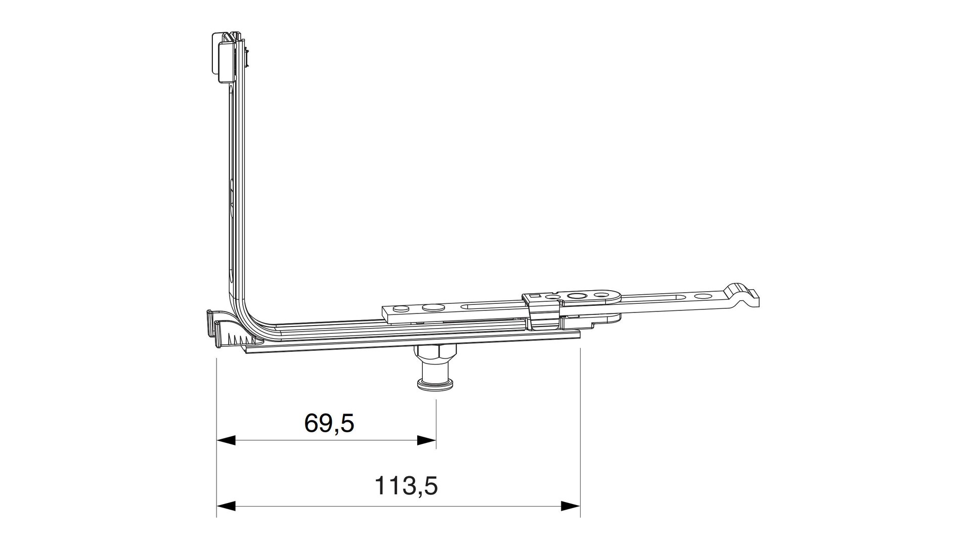 Eckumlenkung MM für Bodenschwelle waagrecht verlängerbar für 18 mm Falzluft FFB 260-1.800 Silber MACO