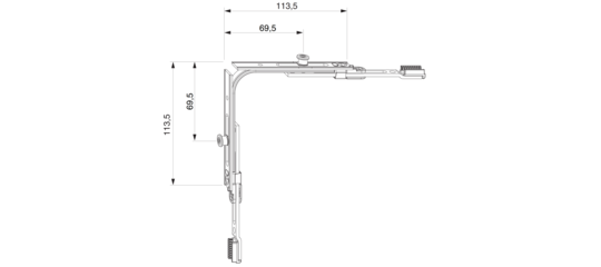 ECKUMLENKUNG MM FÜR SCHRÄGFENSTER MIT 2 I.S. FFB 440-1.300 SILBER MACO