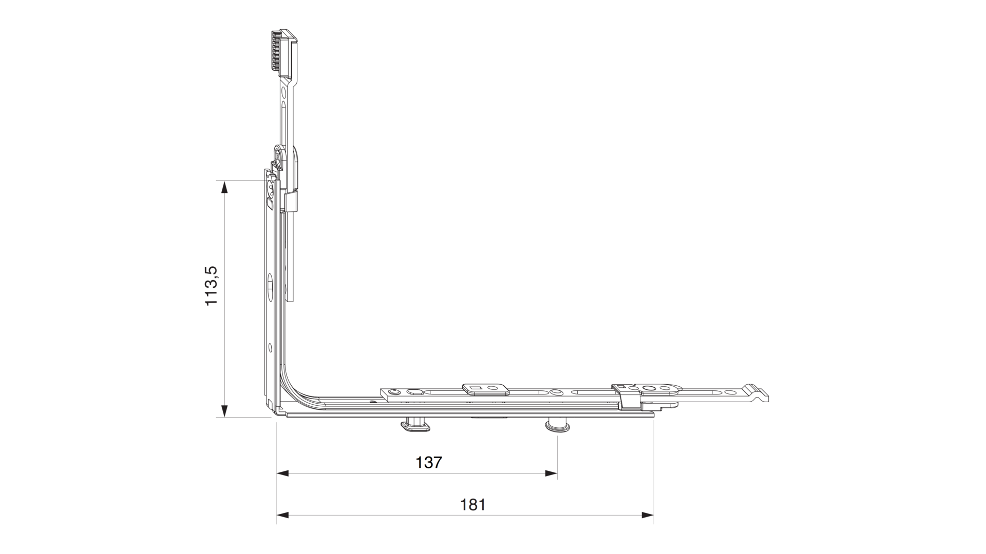 ECKUMLENKUNG VAR. GETRIEBE, WAAGRECHT VERL. 1I-S SILBER, MM MACO