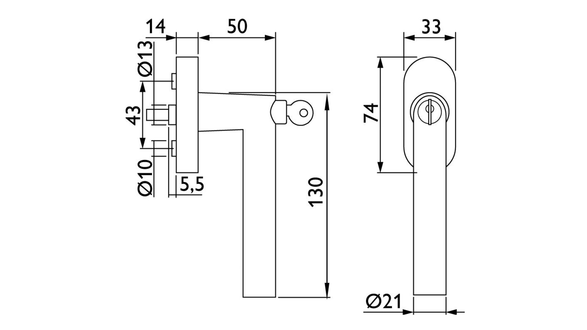 Fenstergriff Basic 1802 (DKI.C/1627), abschließbar, 37–43 mm/90°, Edelstahl HERMAT