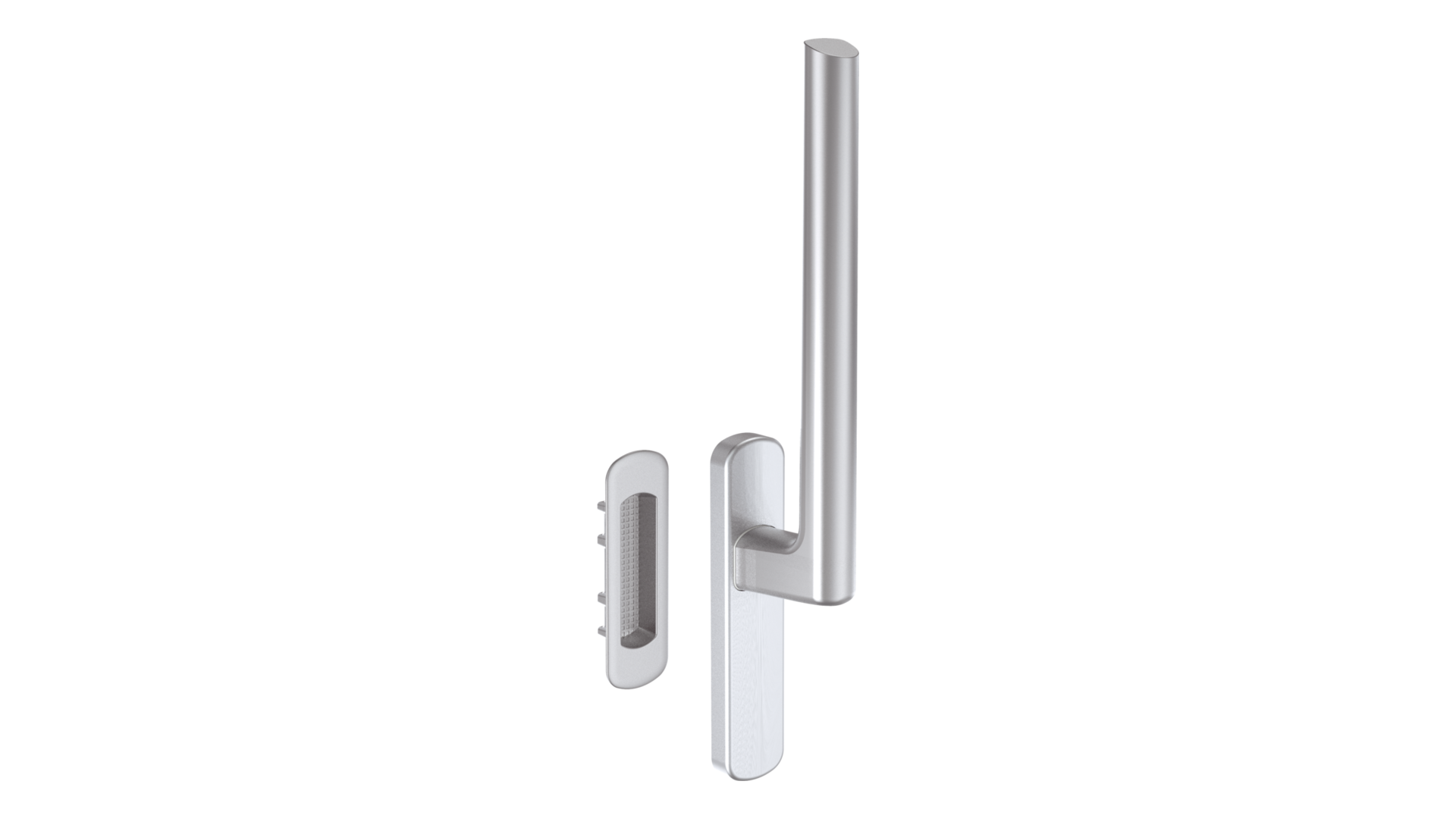 HS-Griff 12 Garnitur mit Abdeckblende und Muschelgriff kurz bis 110 Nocken 10 Silber eloxiert MACO