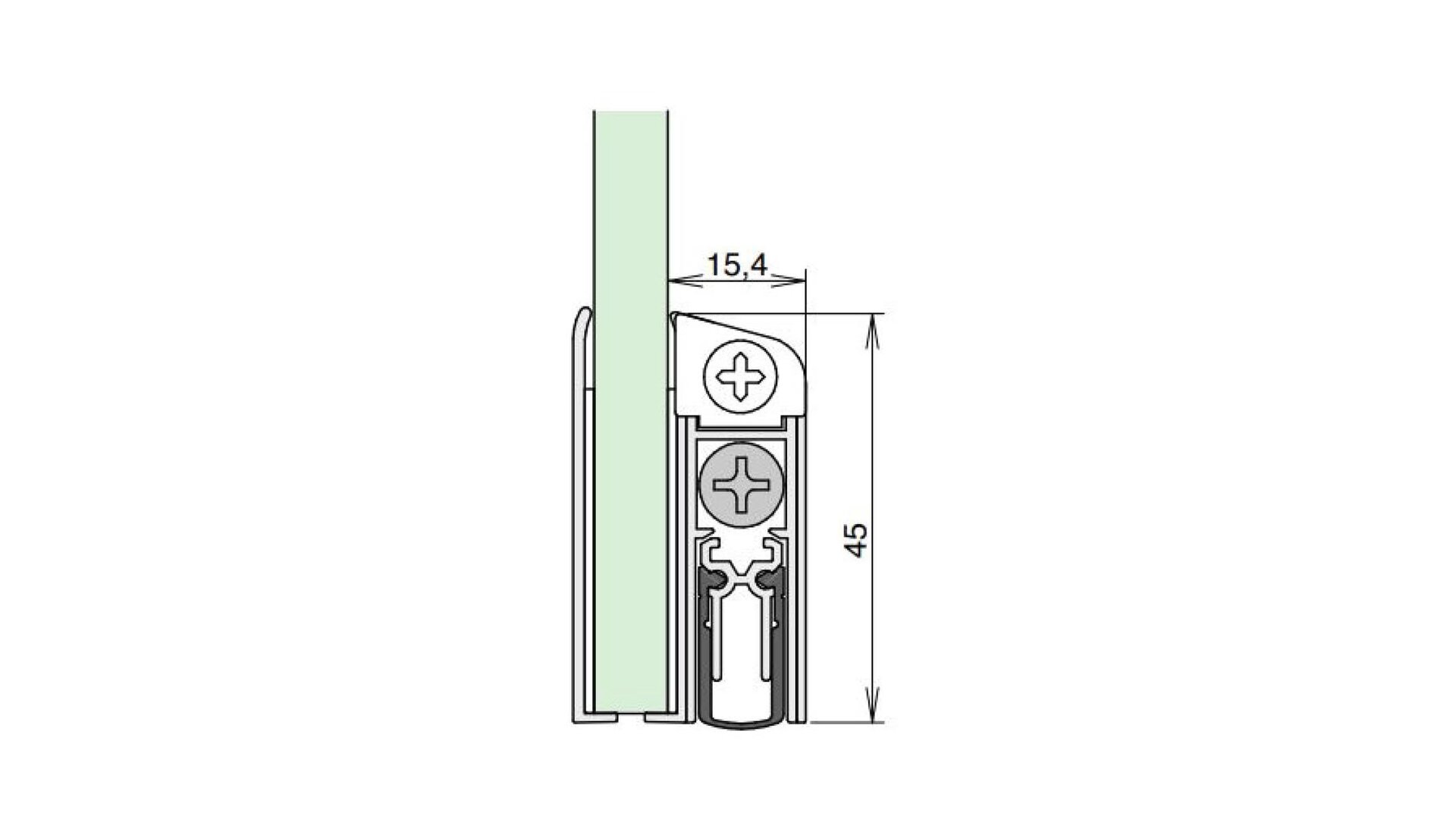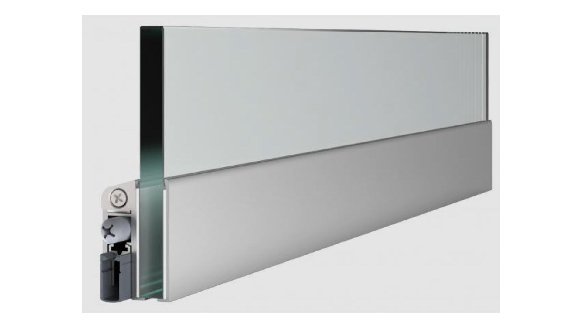 Padací práh Schall-Ex GS-A pro skleněné dveře 1083mm, vč. nalepené lep.pásky, jednostranné spouštění, silikon, elox. imitace nerezi