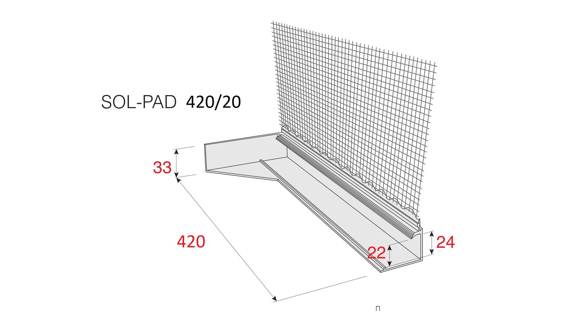 Parapetní omítkový profil SOL-PAD 420/20 (AL parapet s vyložením 281-420mm) RANIT CZ