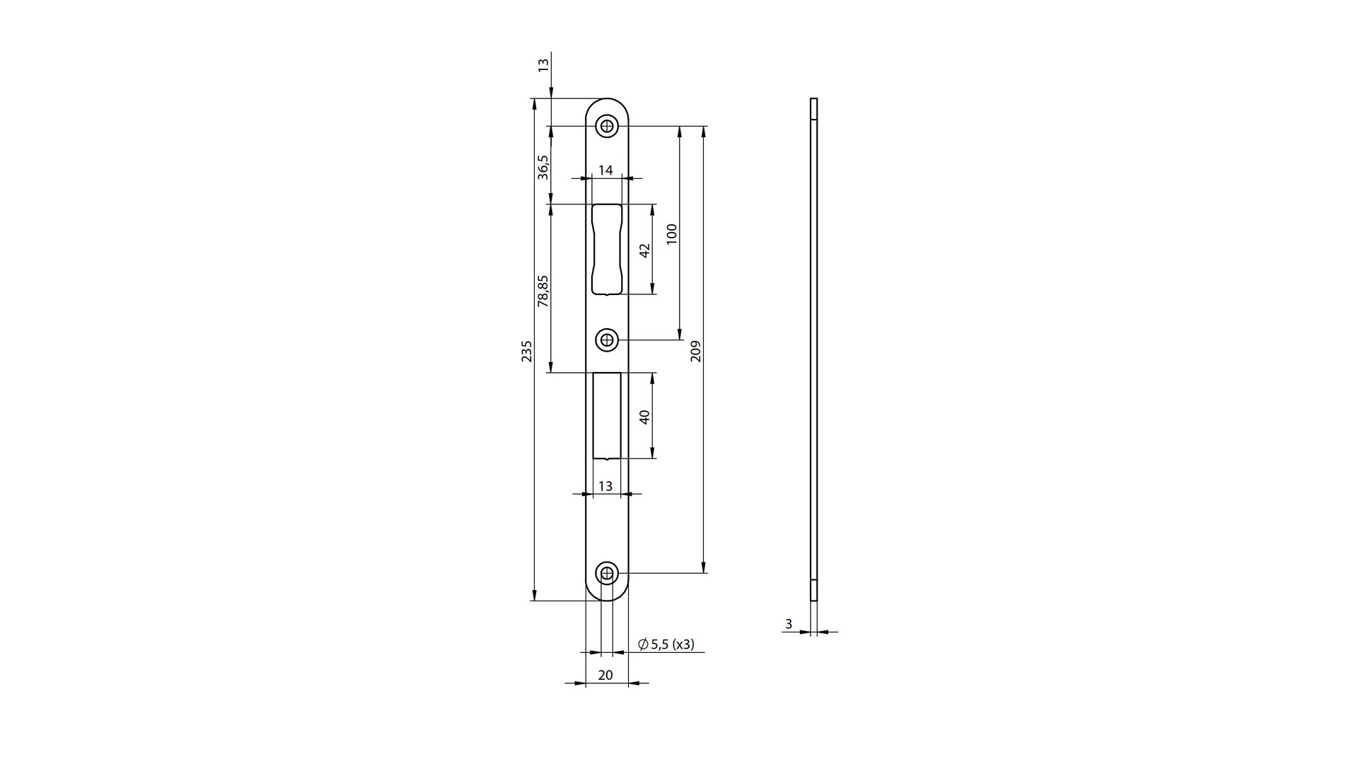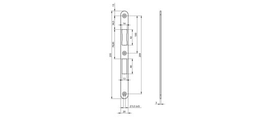 Schliessblech N6001 zu Türschlossen N11** 235x20x3mm ASSA ABLOY