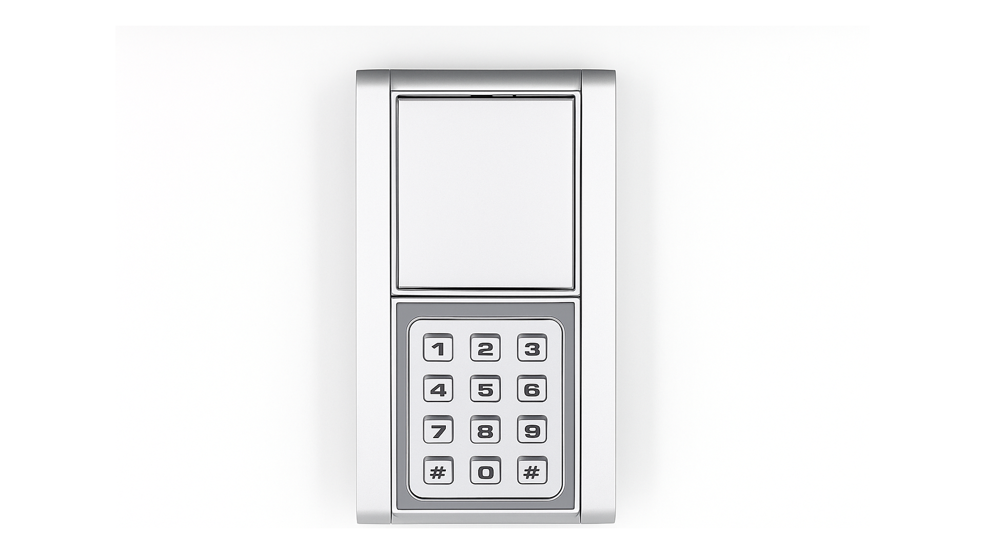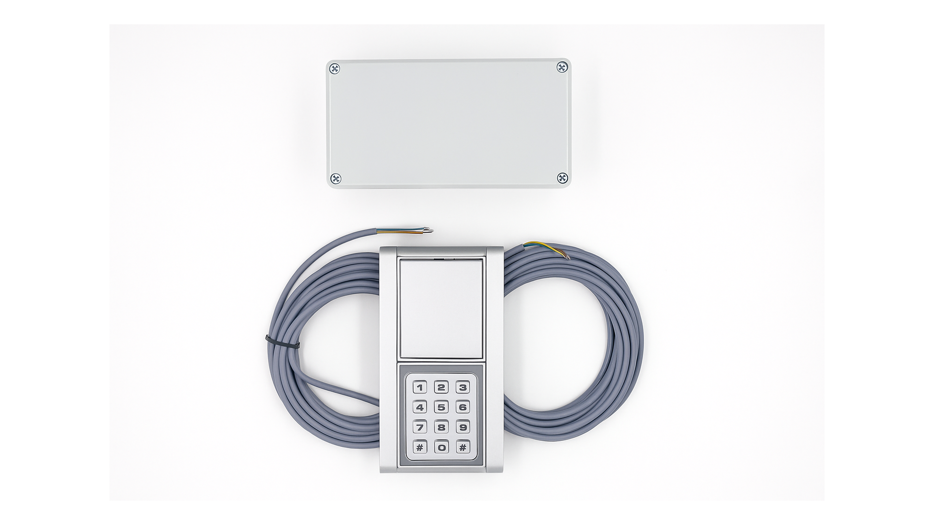 Set aus ABB TIME-Leser + PIN-Tastatur, vertikale Platzierung (übereinander), externer Anschluss an das NP12W-Netzteil inkl. Raabkey WiFi-Steuergerät, 125 kHz, 6 m Kabel, Titan RAAB