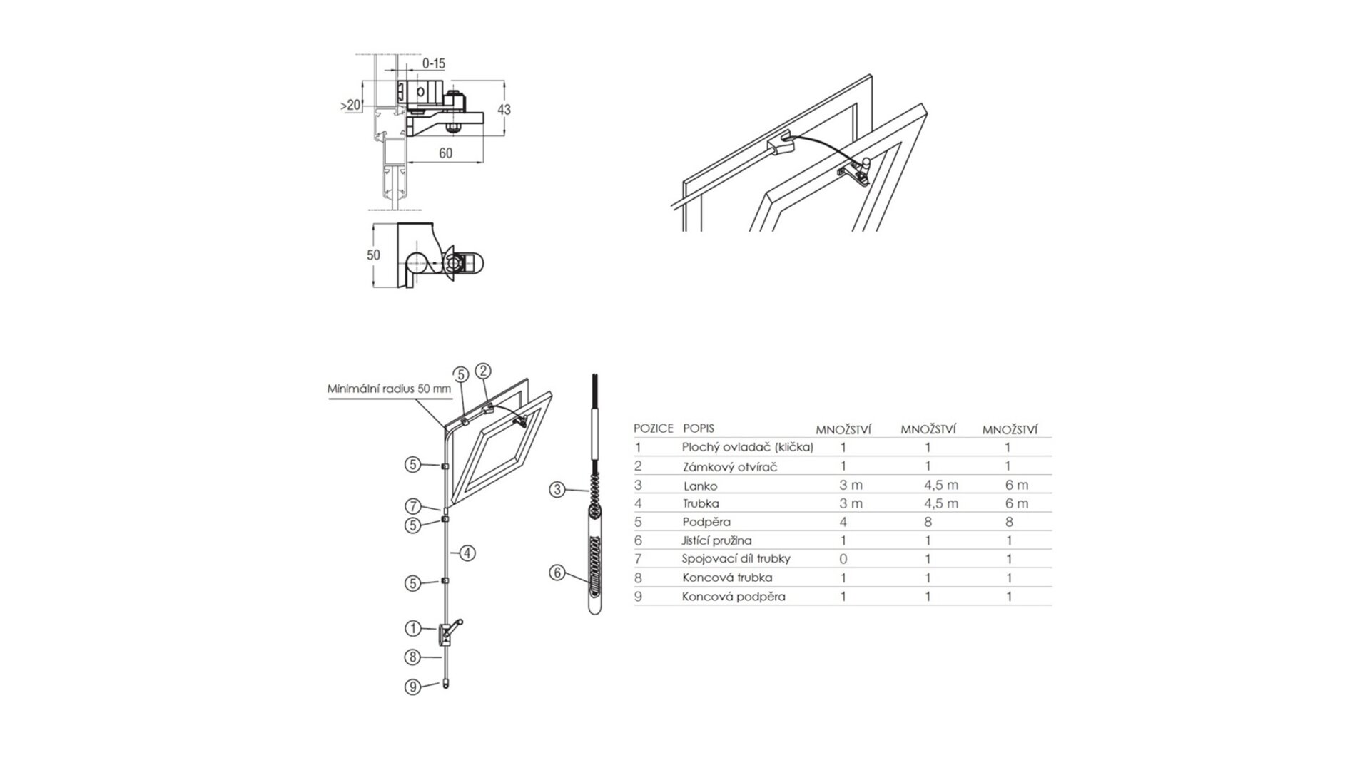 Soupravy pro otevírání oken s pantem dole 6m, černá (40173I) ULTRAFLEX CS