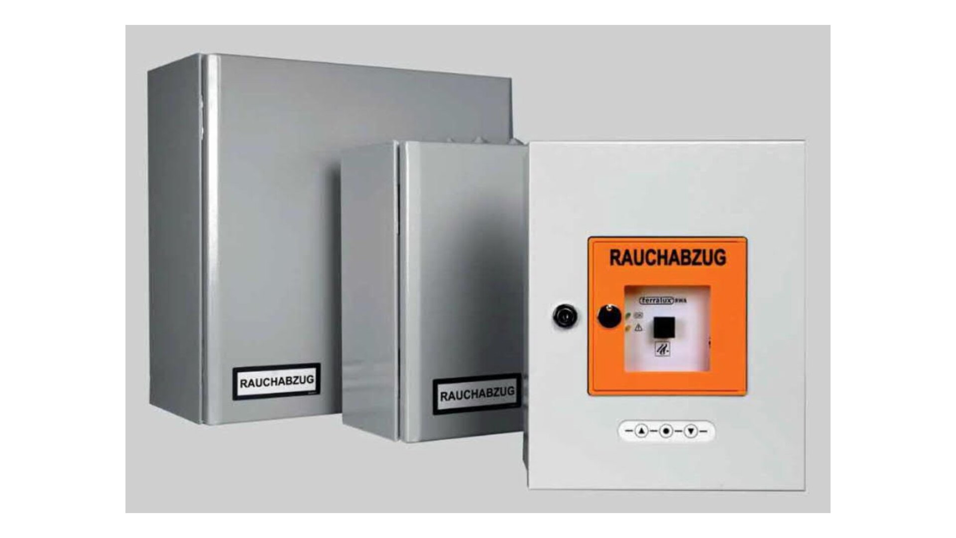 Zentraleinheit EMB 7300, 5 A, Notstromversorgung inklusive Batterien, Schutzart IP 30, 1x RWA + 1x Lüftungsgruppe, grau AUMÜLLER